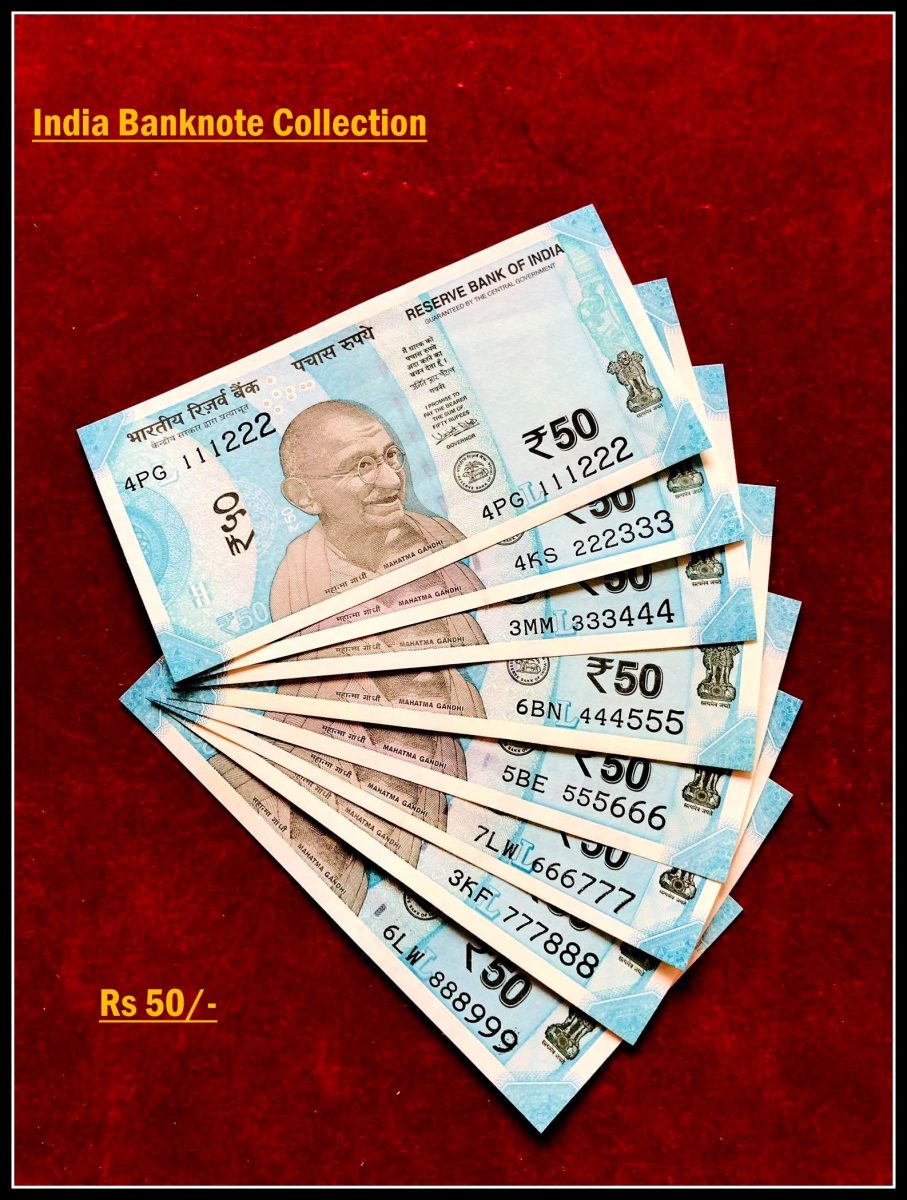 Rs 50/- India Banknote Solid Set Gem Unc 111222 to 888999 Latest Issue Unique and Rare