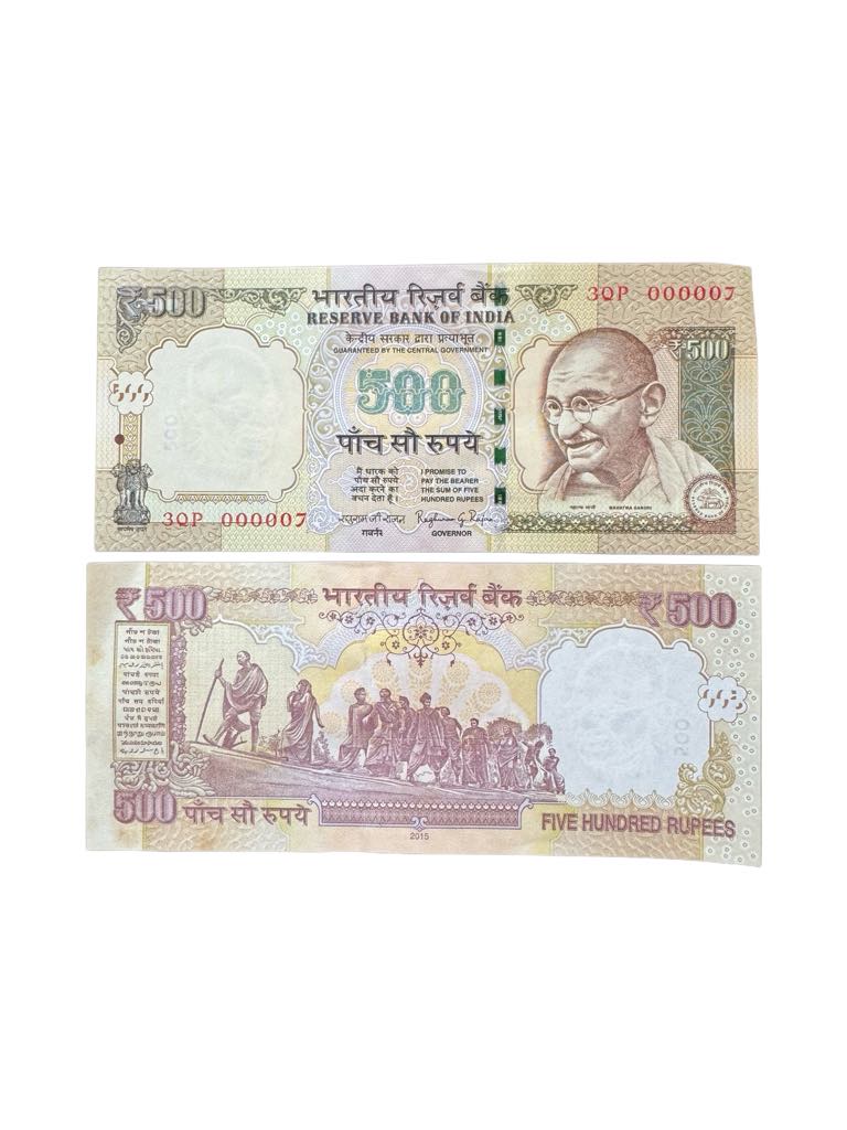 Rs 500/- L0w serial India Banknote Gem Unc 000007 Latest Issue Unique and Rare