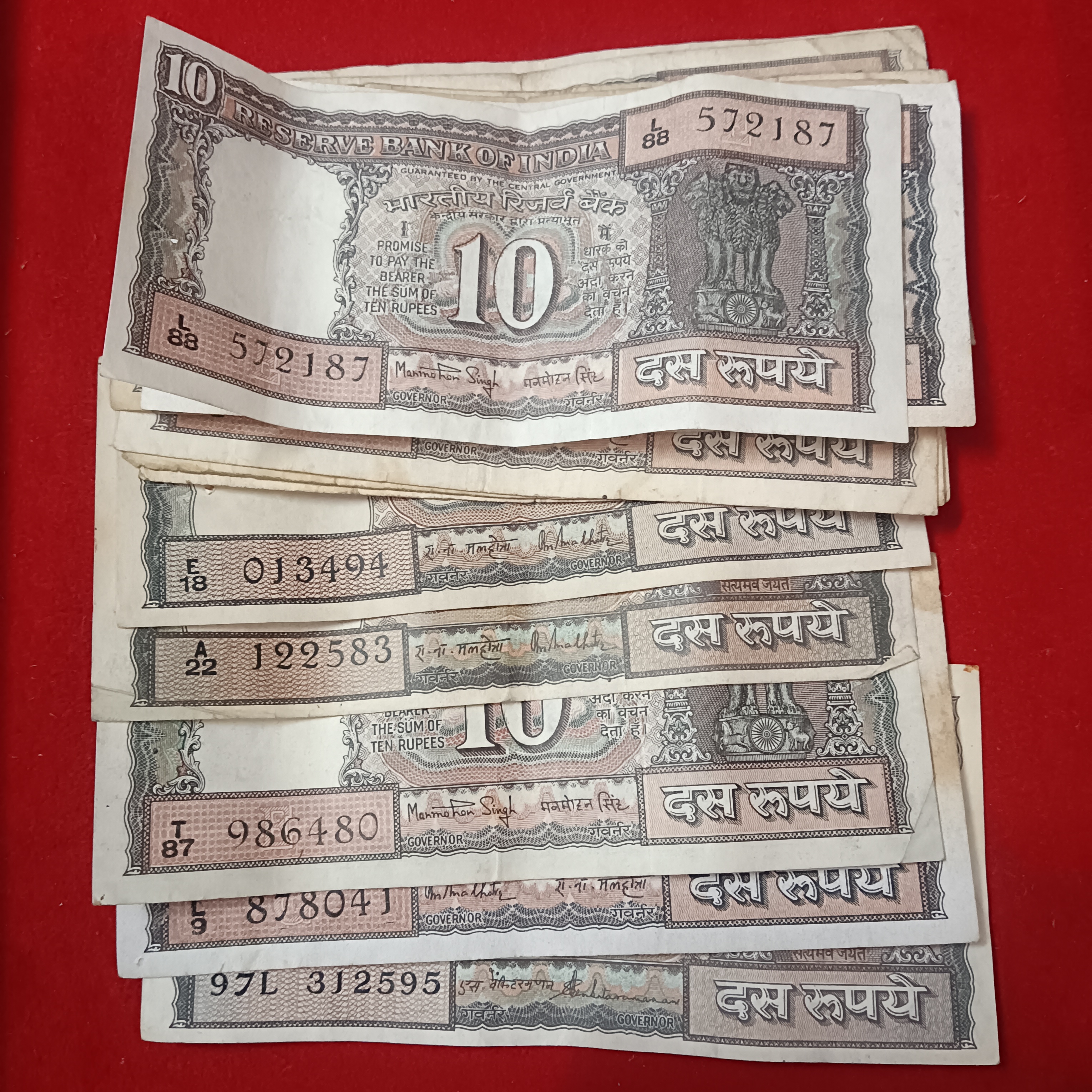 Ten Rs Black Boat Notes 15 Pcs Given B7