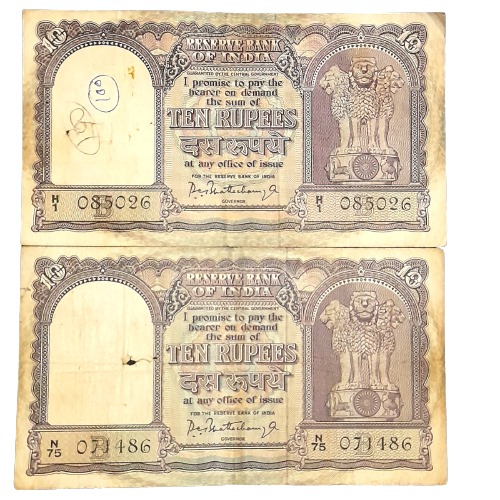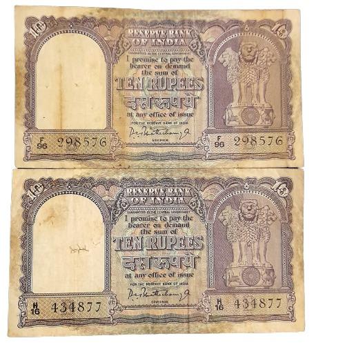 Ten Rs Old Big Fafda Note XF Condition Governor PC Bhattachary or 1 Pcs hvr Iyenger 6 Pcs Given B7