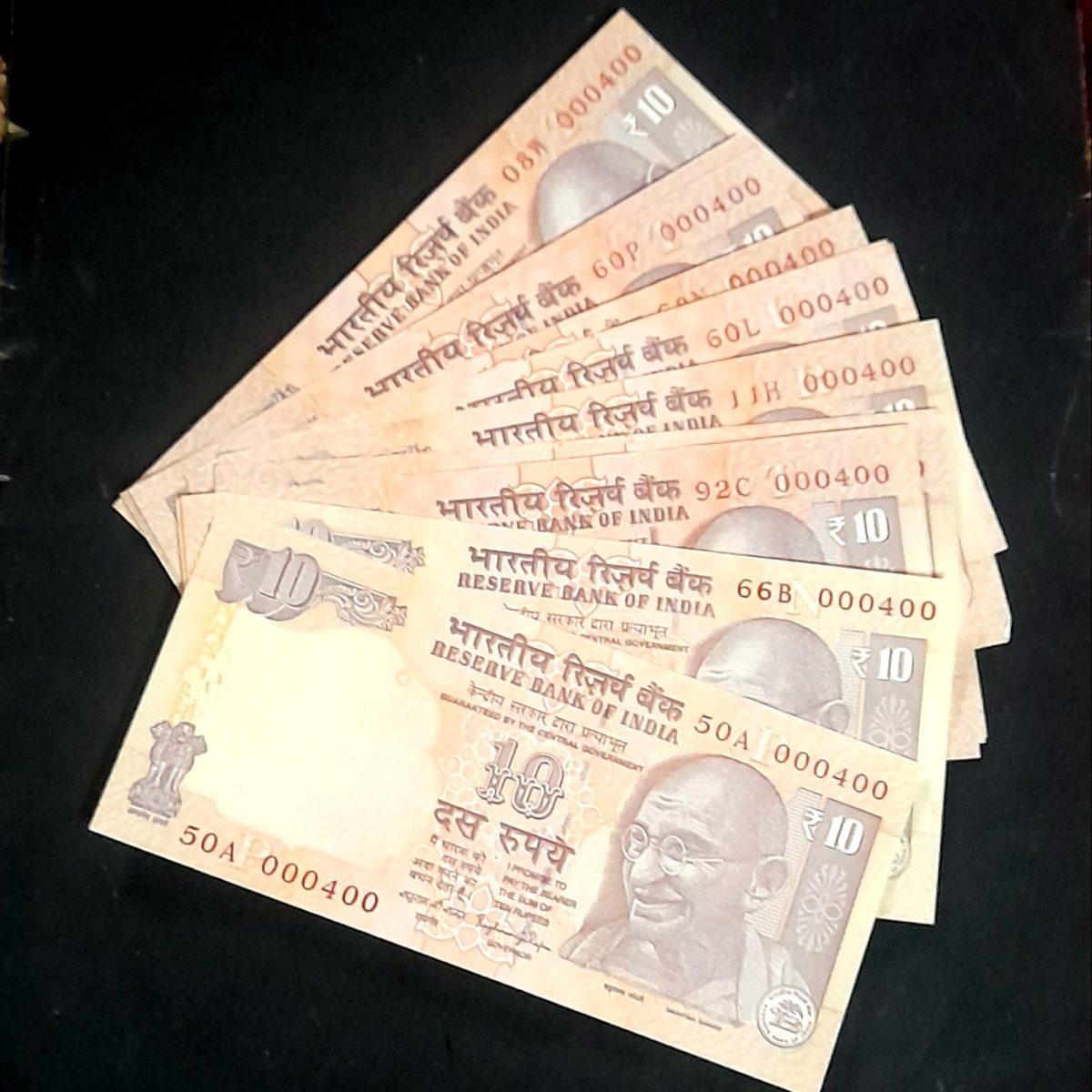 - Ten Rs Old Notes Same Semi Numbers All Notes 000400 Total 20 Notes Given Raghuram Rajan Governor Gem Unc Condition B7