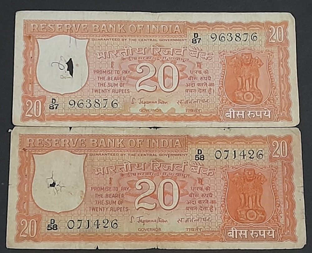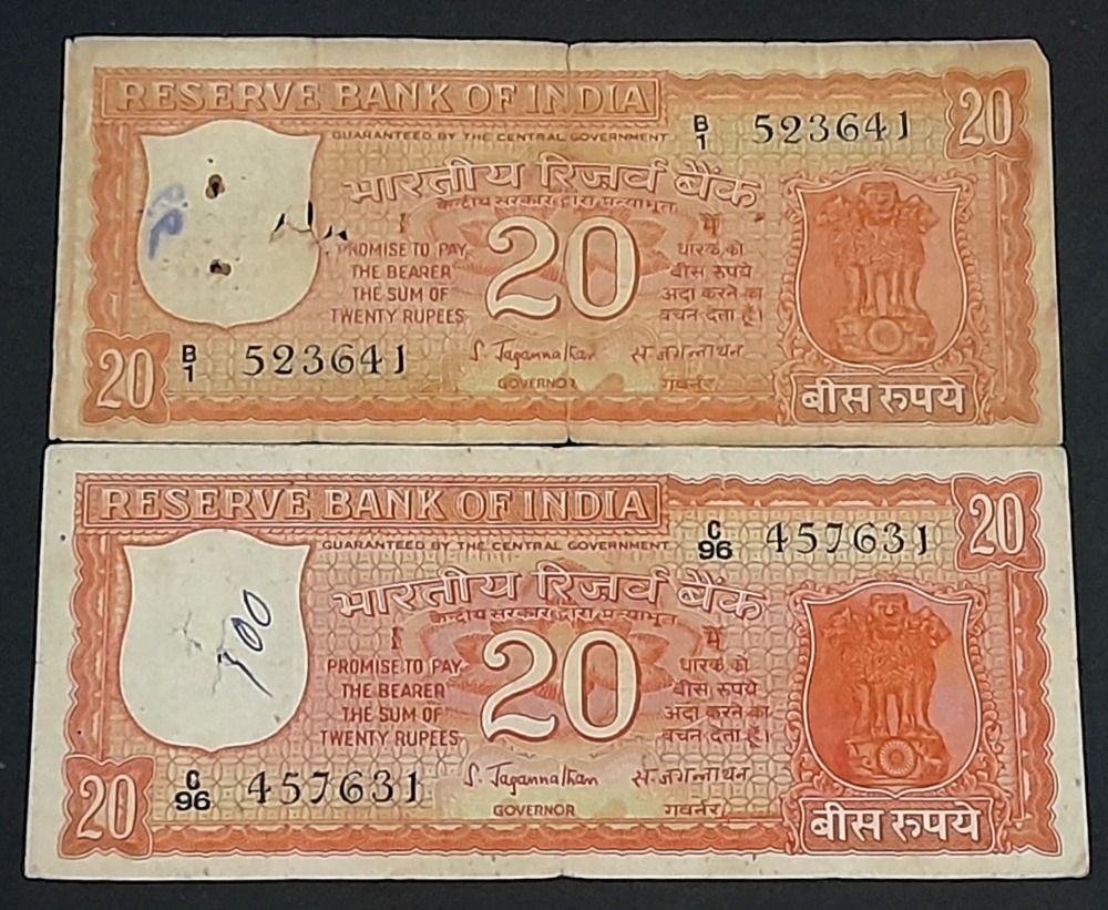 Twenty Rs Parliament Notes Governor S.Jaganathan 6 Pcs Fine Condition B7