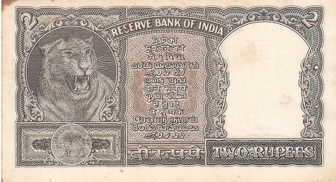 Two Rupees Pc Bhattachrya Olive Green Half Tiger AU Condition Note
