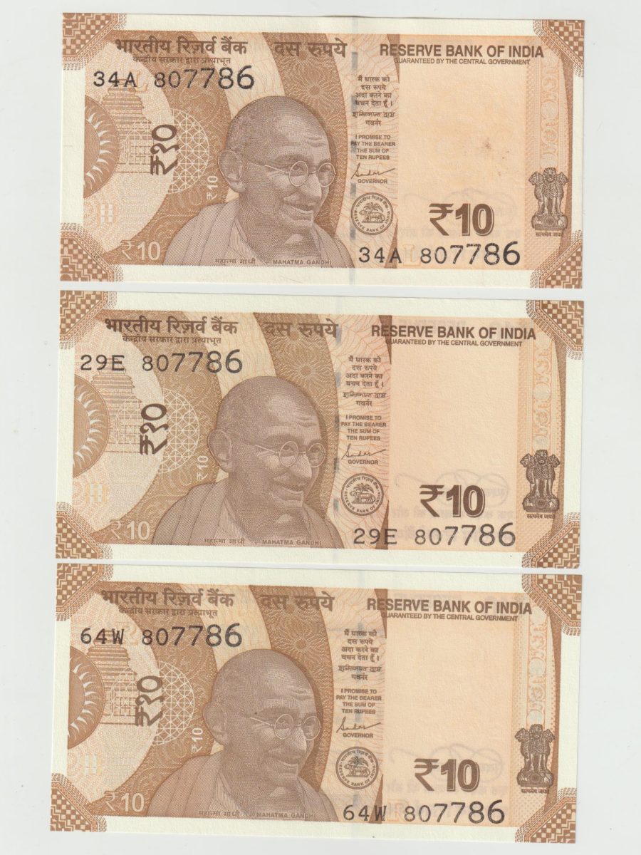 UNC 10 Rupee Fancy Number 786 Ending Note 3 Same Serial No Notes Collection Similar Number Available