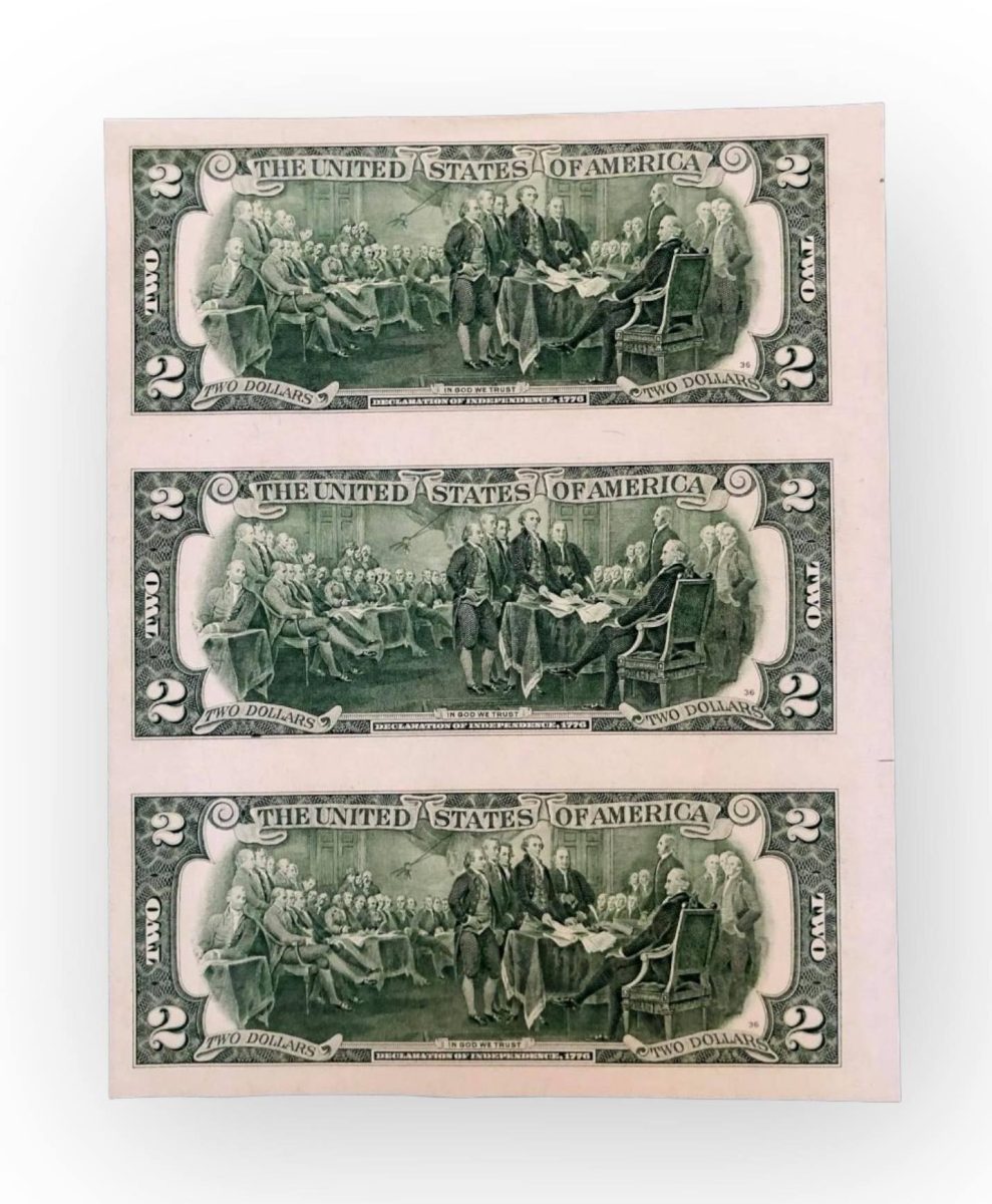 United States of America Issue $ 2 UNCUT 3 Piece GEM UNC Unique and Rare Tope Collectible Item USA