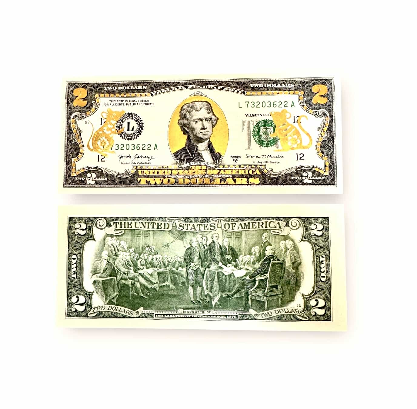 - Includes the text “THE UNITED STATES OF AMERICA” and “TWO DOLLARS.”