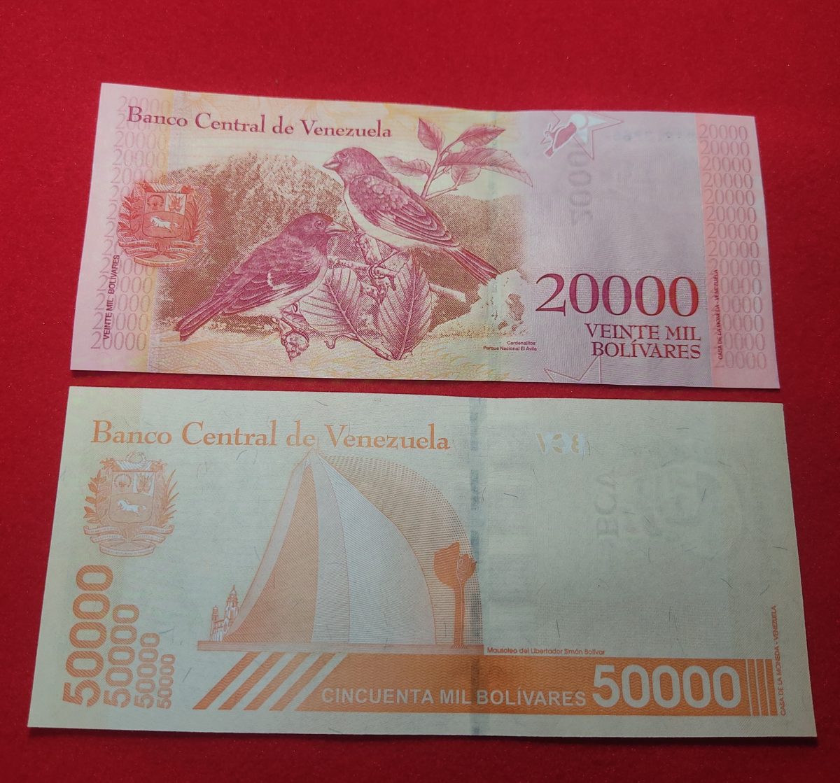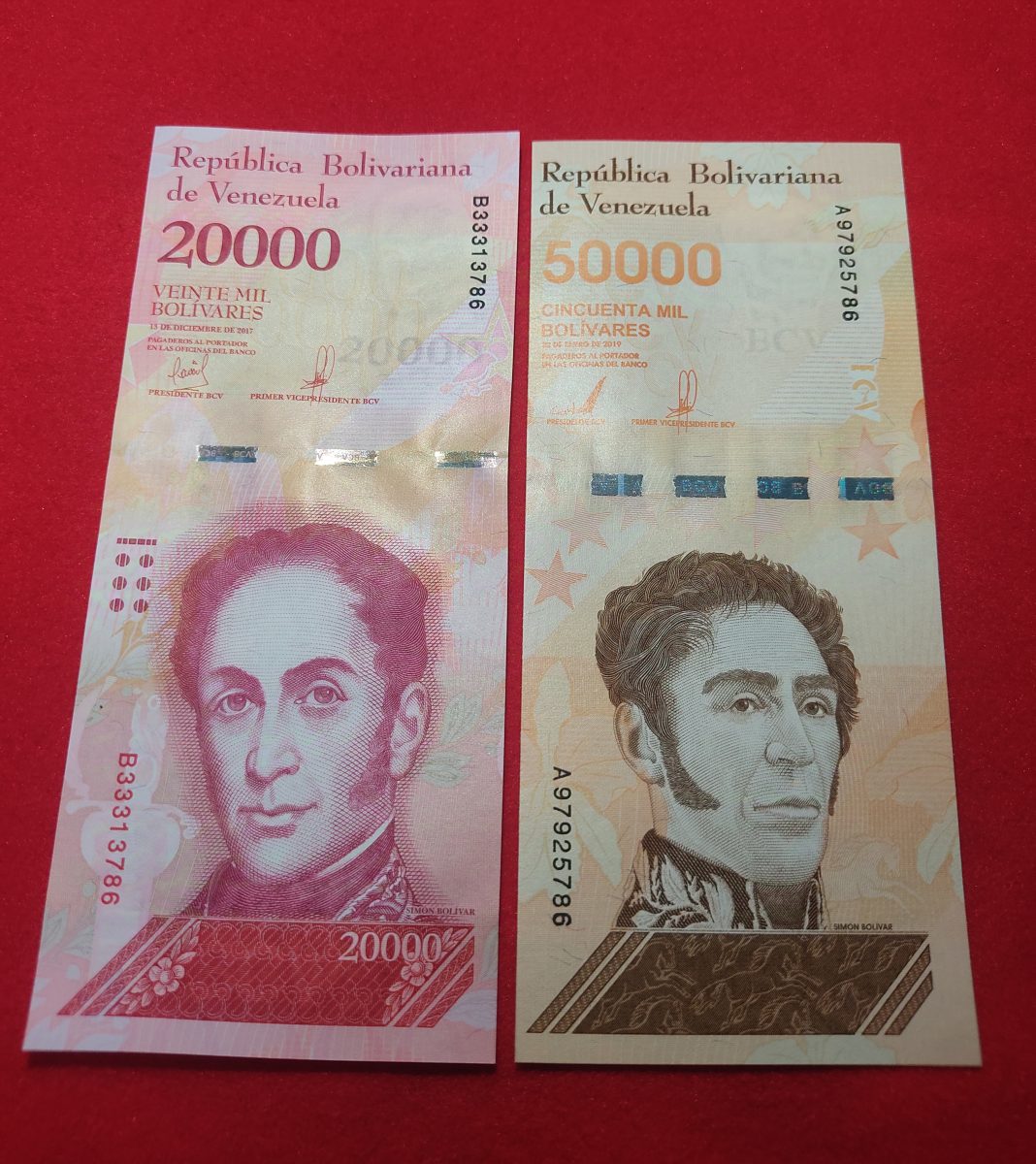 VENEZUELA 2 NOTE SET 20000 BOLIVARES AND 50000 BOLIVARES ENDING 786 NUMBER GEM UNC CONDITIONS
