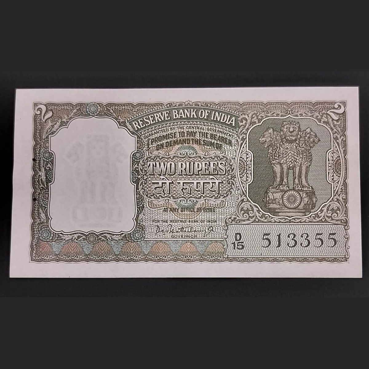 Very Rare 2 Rupee Olive green tiger Note UNC Serial D/15 513355