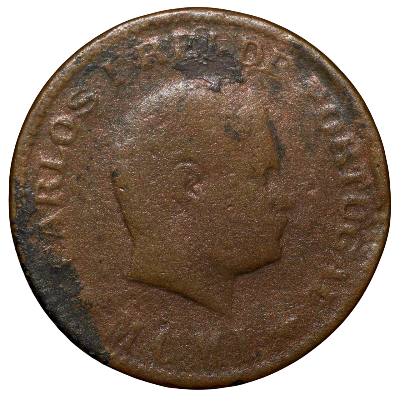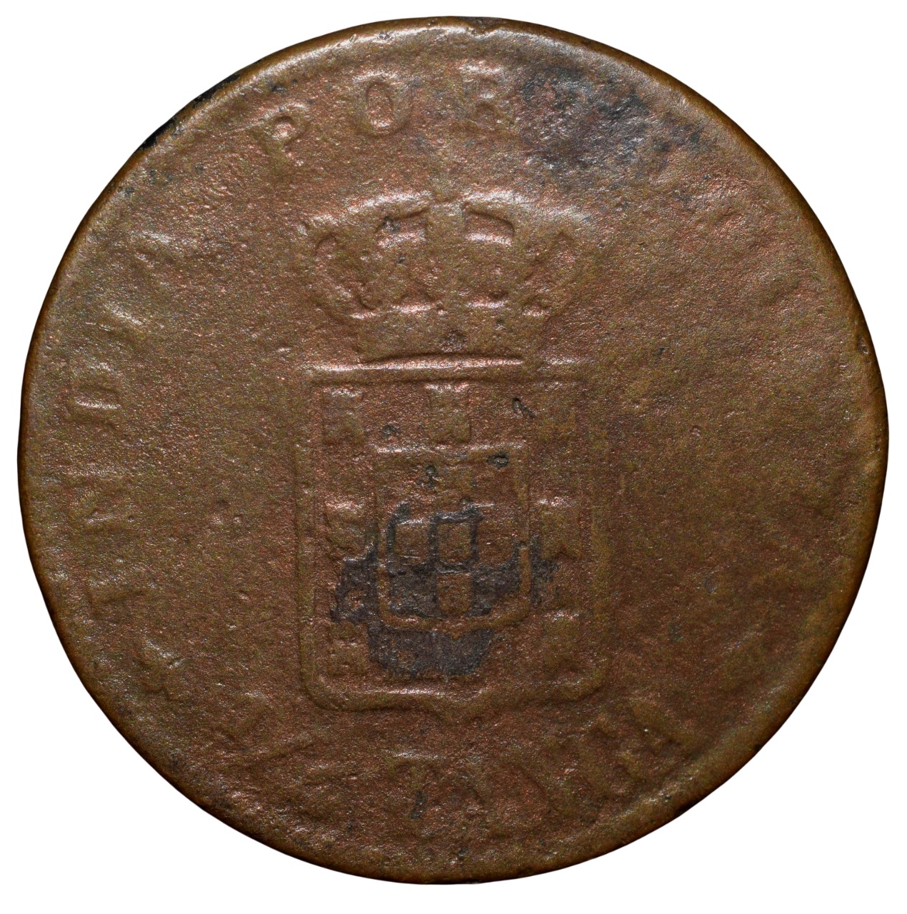 Copper 1/4 Tanga of Carlos I(AD 1901) of Indo-Portugal KM15