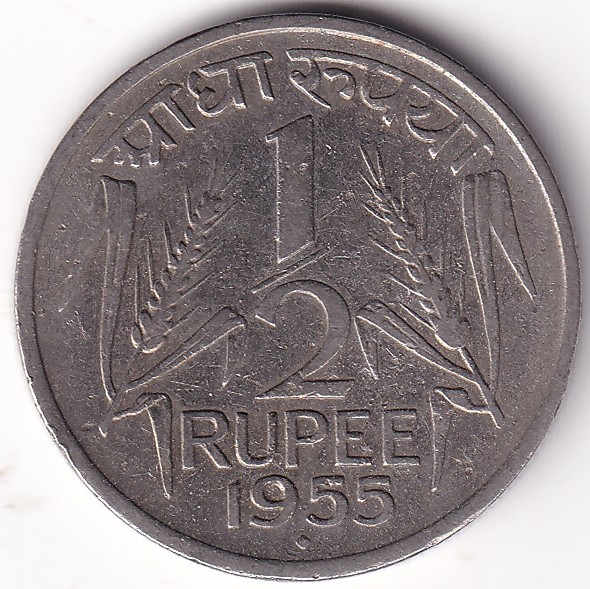 1/2 Rupee 1955 Bombay Mint Ex Rare Coin