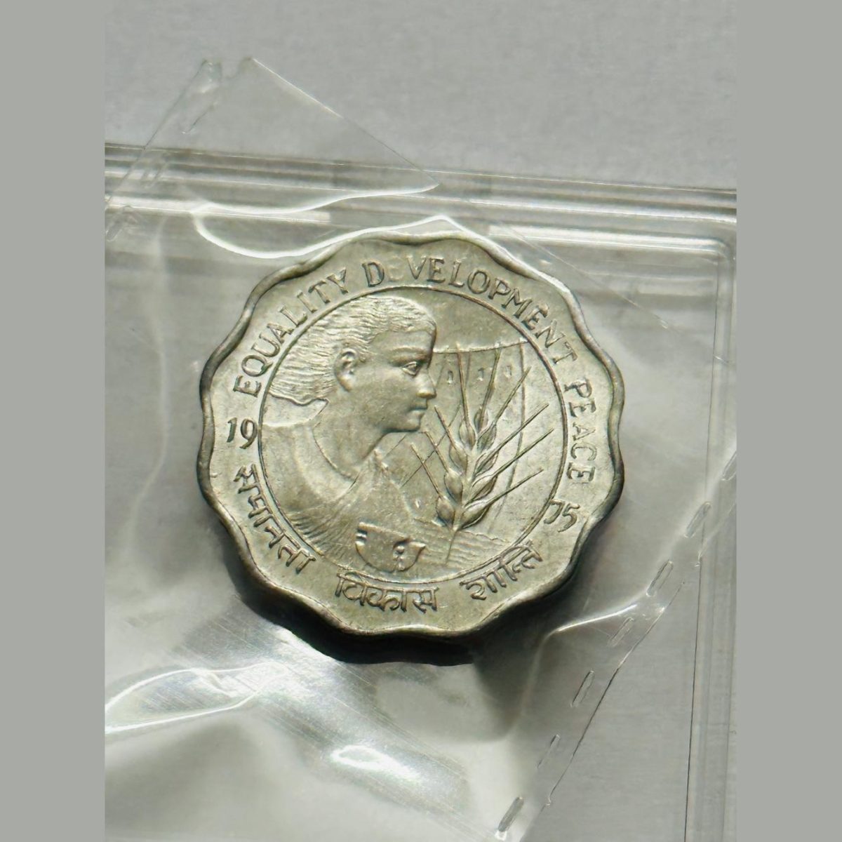 10 Paise 1975 Equality Development Peace Aluminium Coin Kolkata Mint BUNC