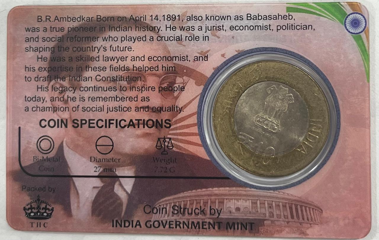 10 Rs ( 125th BIRTH ANNIVERSARY OF DR B.R. AMBEDKAR COMMEMORATIVE ISSUE RARE COIN CARD SPECIAL EDITION