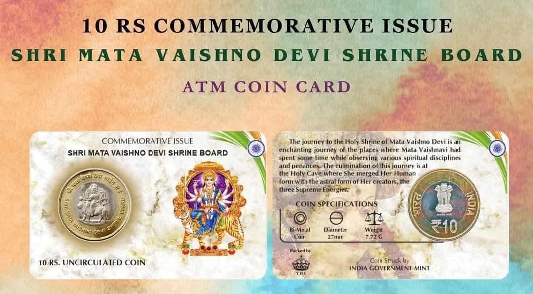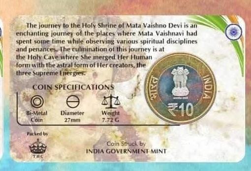 10 Rs SHRI MATA VAISHNO DEVI SHRINE BOARD rare Commemorative Coin Card Special Edition