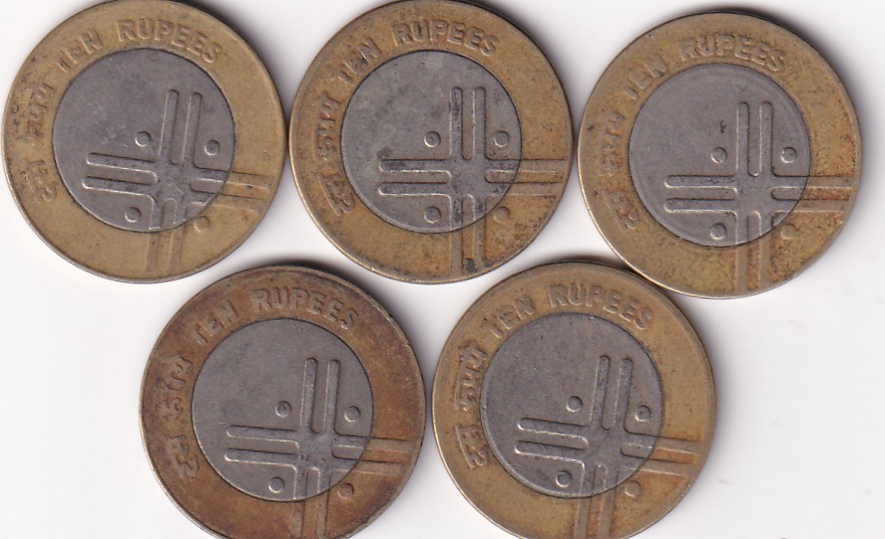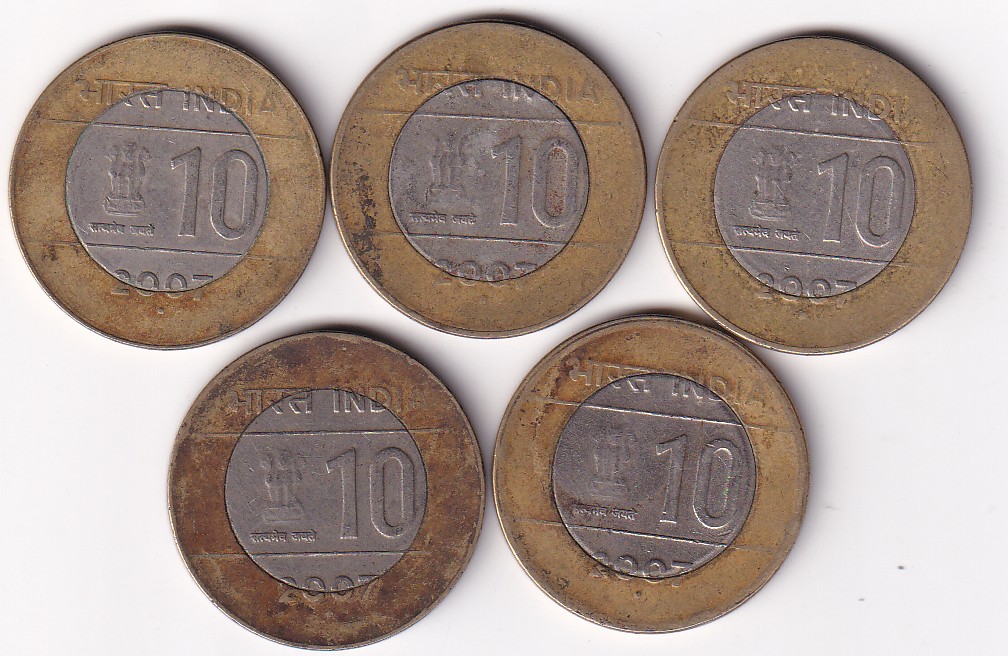 10 RUPEES INDIA CROSS COIN 2007 NOIDA MINT ( 5 COIN ) SET#D-192