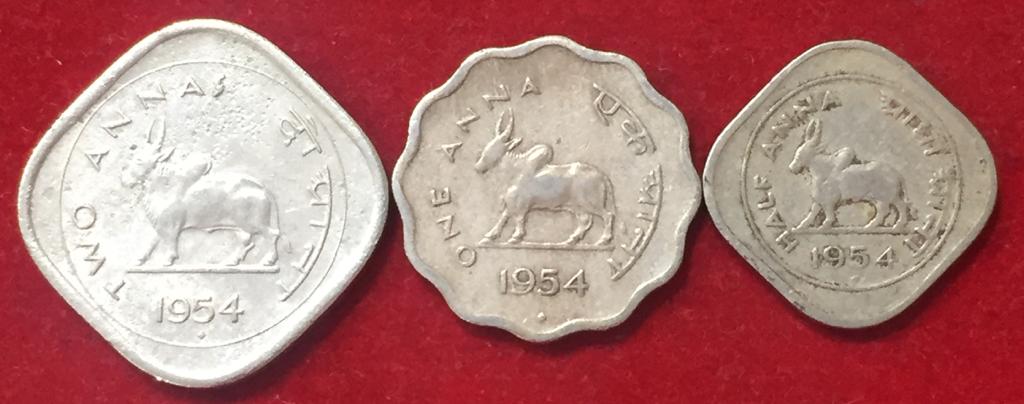 1954 Bull complete Set Two Anna’s. Half Anna’s. Quarter Anna’s completely set