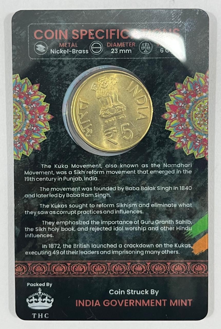 5 Rs. 150 YEARS KUKA MOVEMENT rare Commemorative Coin Card Special Edition