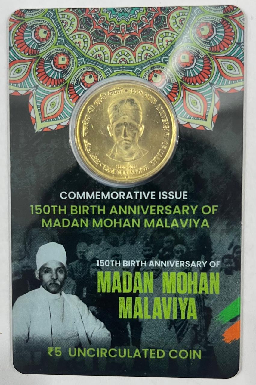 5 Rs. 150TH BIRTH ANNIVERSARY OF MADAN MOHAN MALAVIYA rare Commemorative Coin Card Special Edition