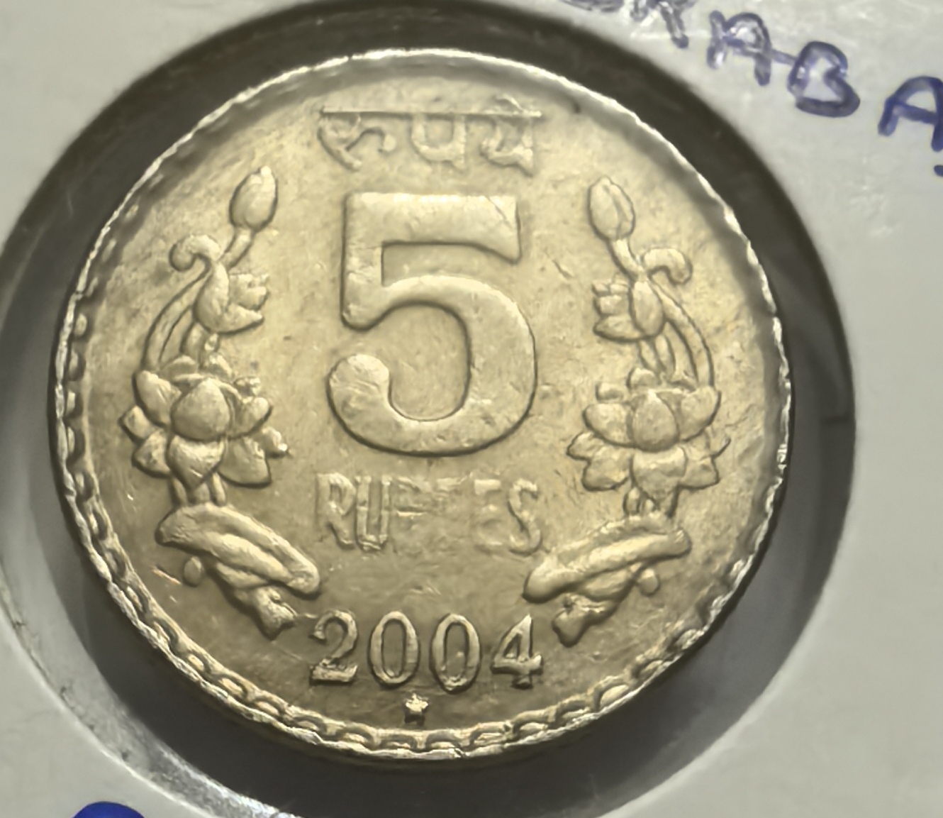 5 Rs 2004 Hyderabad Mint Copper Nickel Coin UNC Rare
