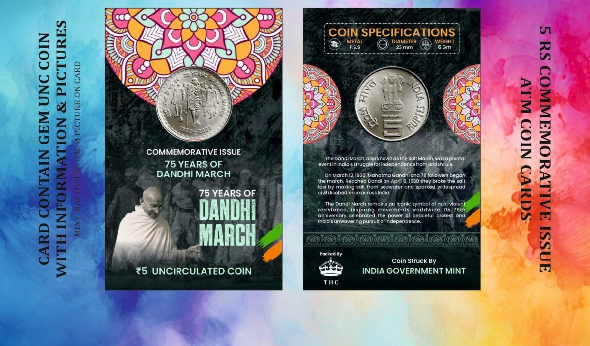 Celebrate the historic 75 Years of Dandi March with this rare 5 Rupees Commemorative Coin Card Special Edition. Issued by the relevant authority, this collectible piece encapsulates the spirit of the iconic event. Crafted in a special metal alloy, this coin card holds a significant place in numismatic history. The coin features a unique design symbolizing the essence of the Dandi March, a pivotal moment in India’s struggle for independence led by Mahatma Gandhi. With its limited mintage and special edition status, this item holds immense collectible value for enthusiasts and historians alike. Each piece comes in pristine condition, enclosed in a protective packaging, making it a cherished addition to any collection. The authenticity and provenance of this rare item further enhance its appeal, making it a must-have for discerning collectors.