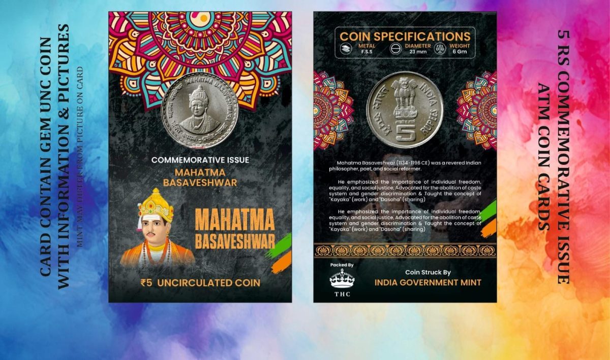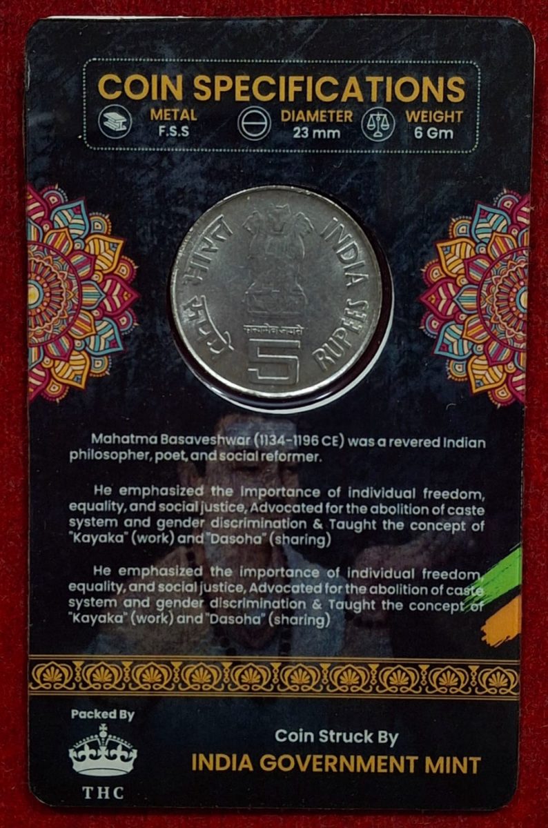 5 Rs. MAHATMA BASAVESHWAR rare Commemorative Coin Card Special Edition