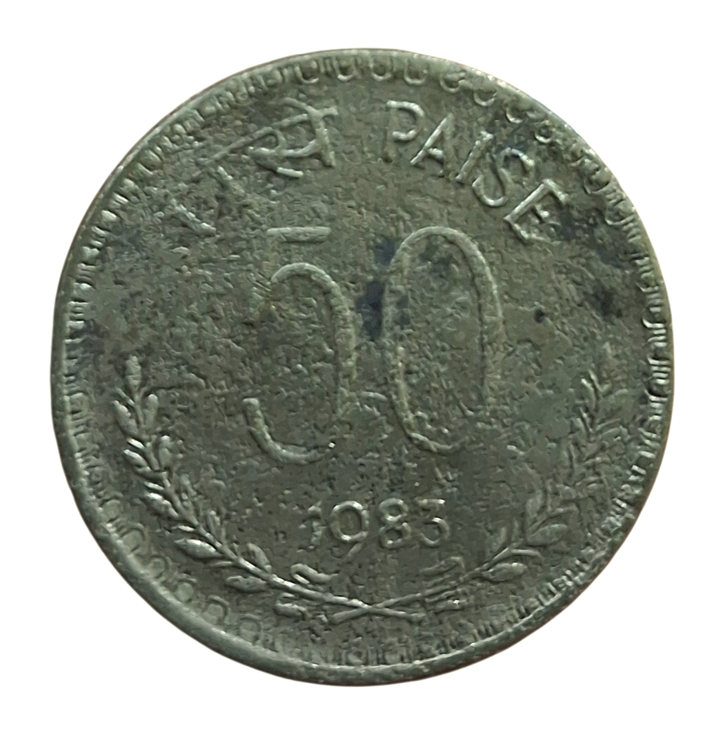 50 Paisa Cu/Ni Year 1983 CALCUTTA Mint **V. SCARE** Used Condition.