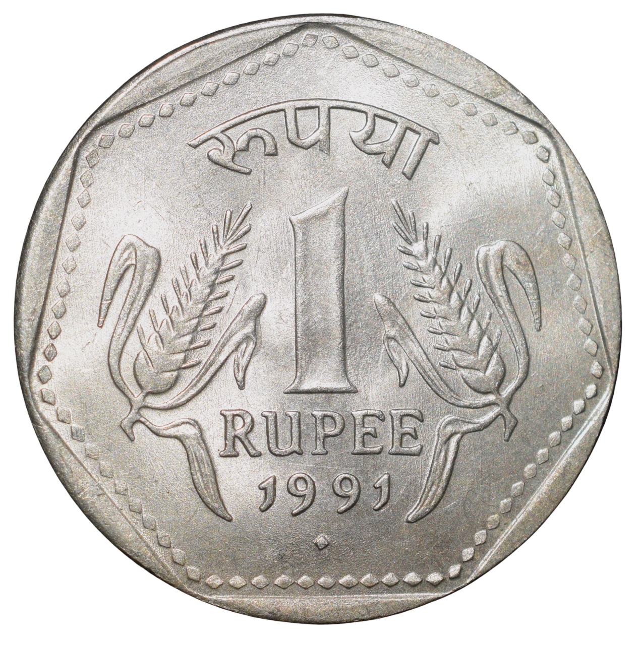 Republic India, (AD 1991), Copper-Nickel 1 Rupee, Bombay Mint, Reeded Edge, About UNC Grade, Rare with Reeded edge.
