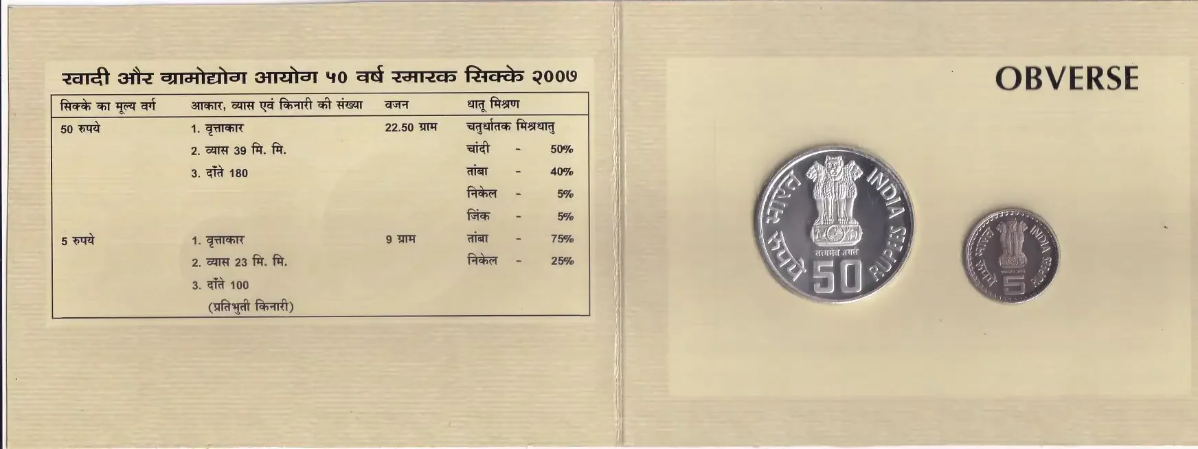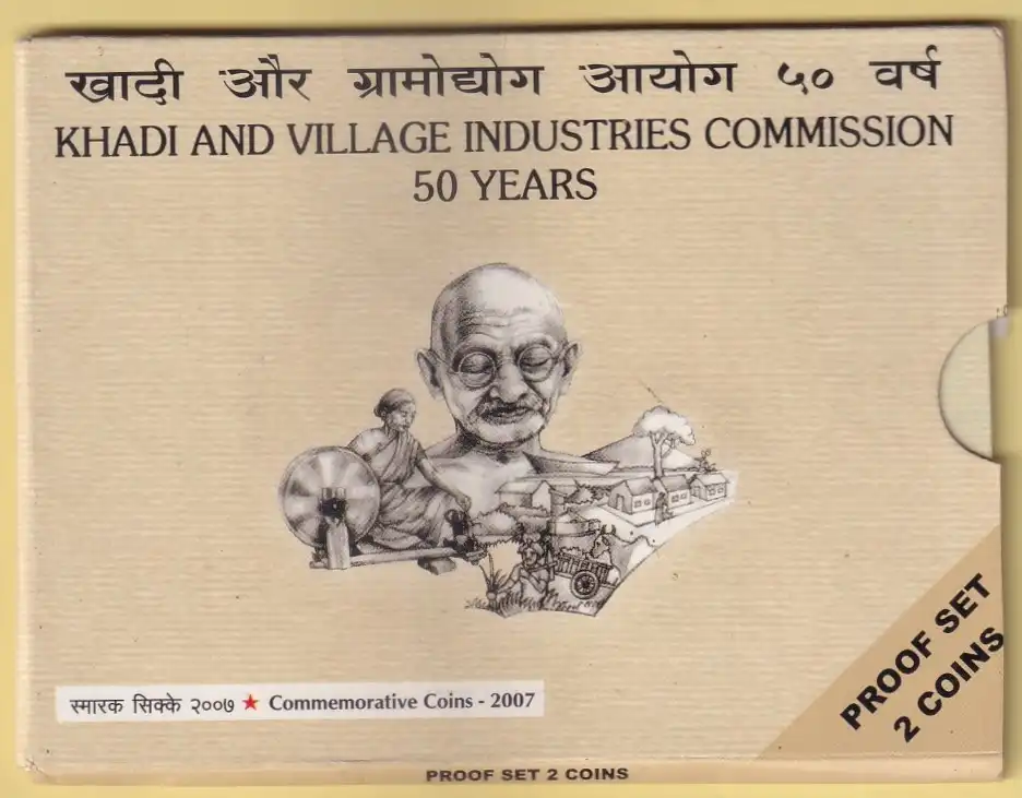 EX Rare Khadi Village Industries 2007 Mumbai Mint Proof Set of 2 Coins