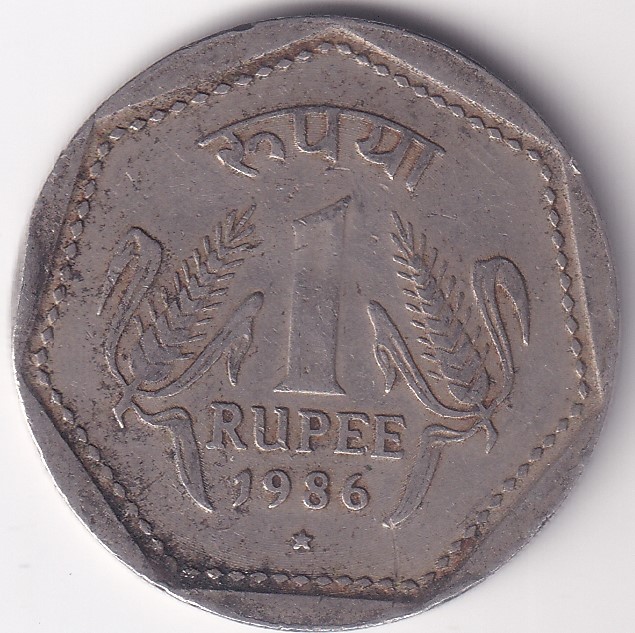 Hyderabad Mint One Rupee 1986 Copper Nickel Collectible Condition Coin Rare