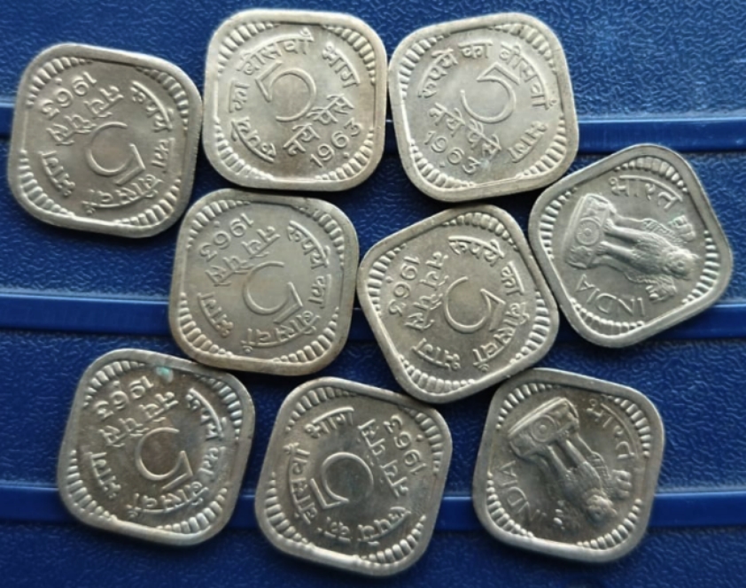 Explore a piece of Indian numismatic history with this 1963 India 5 Paise coin from the Mumbai Mint. Crafted from Copper Nickel, this square coin with rounded corners weighs 4.05 grams and has a diameter of 22mm. The coin is in Fine/Xfine condition as depicted in the image. Issued by the Bombay Mint, this coin bears unique historical significance from the early 1960s era. The collectible value of this coin lies in its rarity, mint condition, and the Mumbai Mint origin, making it a sought-after item for coin enthusiasts and collectors. Whether you are a seasoned collector or a novice looking to start a numismatic journey, this coin is a valuable addition to any collection. This 1963 India 5 Paise coin is not just a currency but a tangible piece of history encapsulating the cultural and economic landscape of the time.