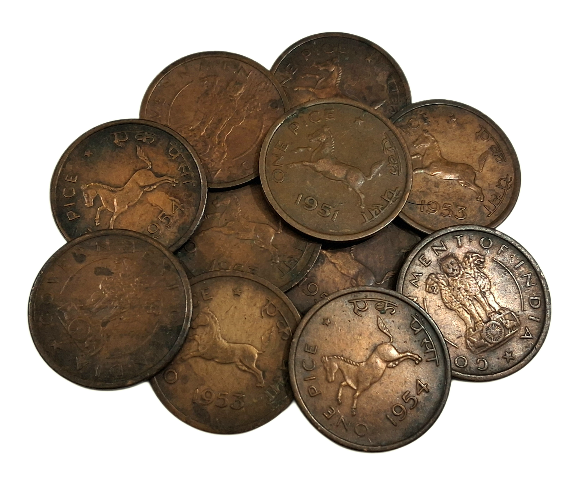 ONE PICE Copper “HORSE PICE” Coins Mixed Years Lot of 10 Coins are in Collectable Grades.