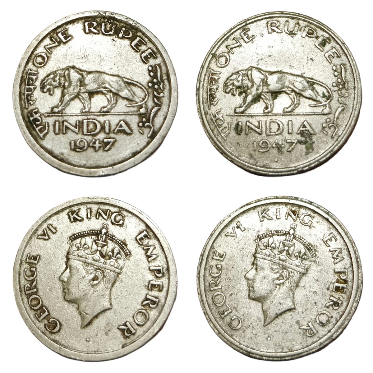 ONE RUPEE Cu/Ni Year 1947 LION 🦁 Portrait LAHORE Mint & BOMBAY Mint SET 2 Coins are in Collectable Grades.
