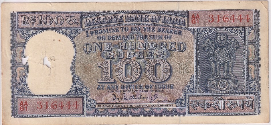 PC Bhattachrya Diamond Issue Old 100 Rupees Note rare
