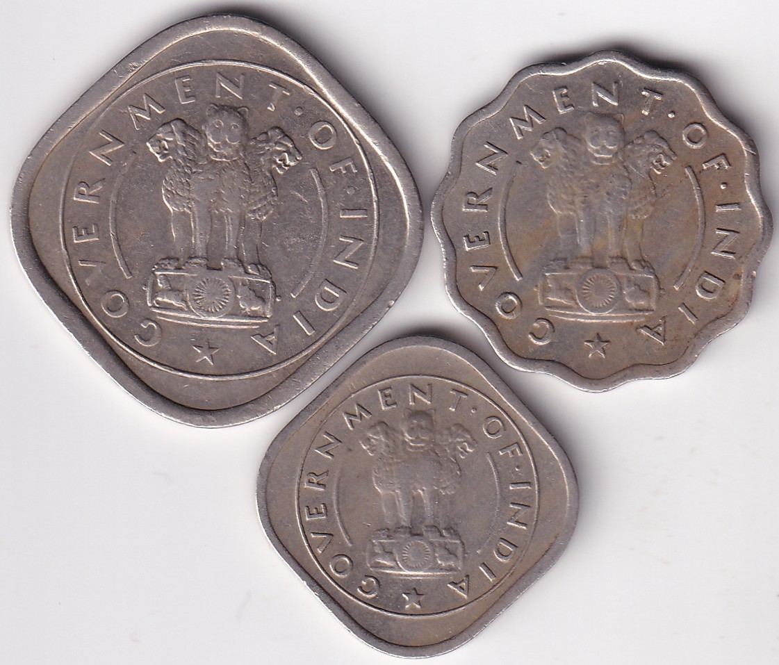 Republic India 1954 Nickel 2 Annas 1 Anna 1/2 Anna Three Coins Set Rare
