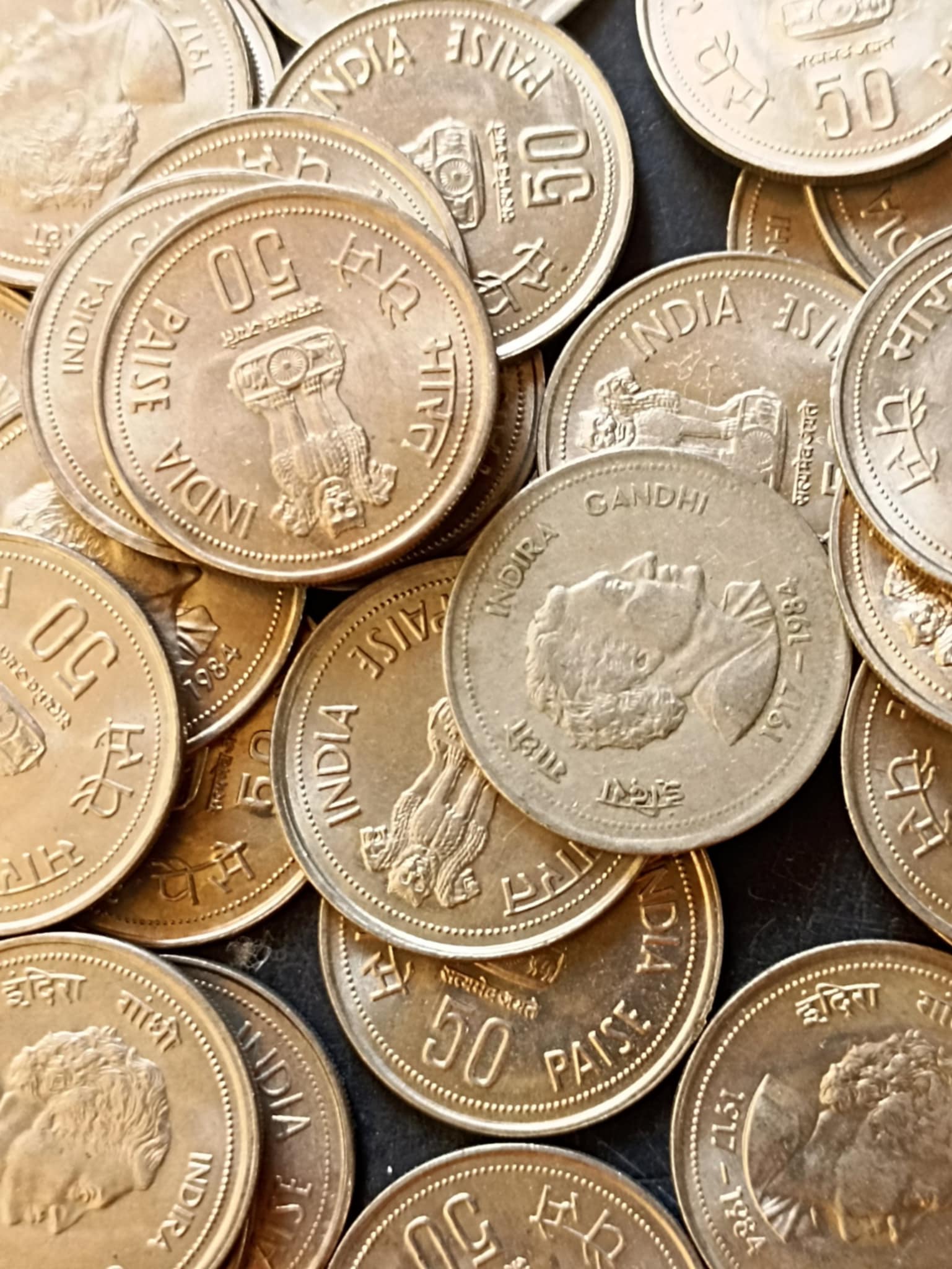 Republic India Denominaton 50 paise Back side of Indira Gandhi Matel copper nickel 25 piece given Same and similar piece available