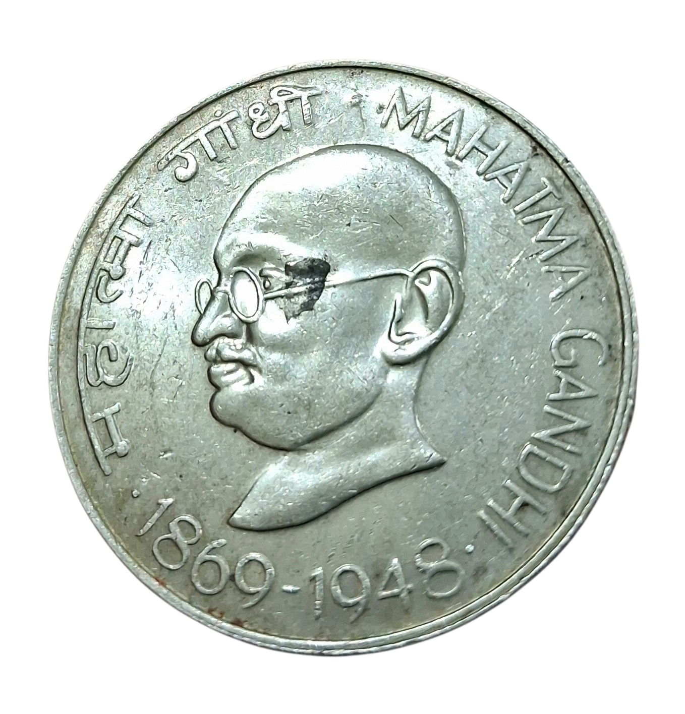 REPUBLIC INDIA Silver TEN RUPEES Year 1969 COMMEMORATIVE Issue GANDHI Bombay Mint in High Collectable Grade.