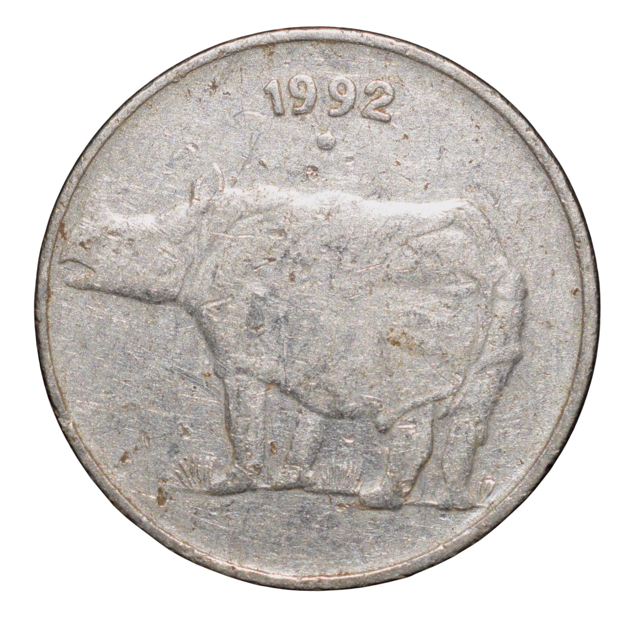 Republic India, (AD 1992), Steel 25 Paise, Rhinosoros Type, Noida Mint, About Fine.