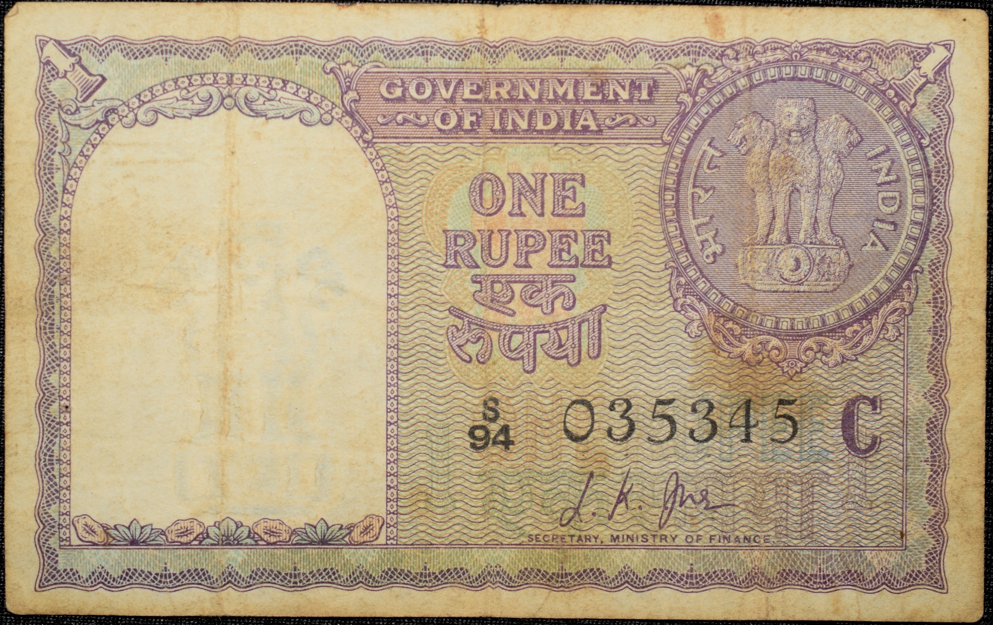 1 Rupee of Republic India (AD 1957) L.K Jha Signature – Sau (100) Naye paise in coin on the back