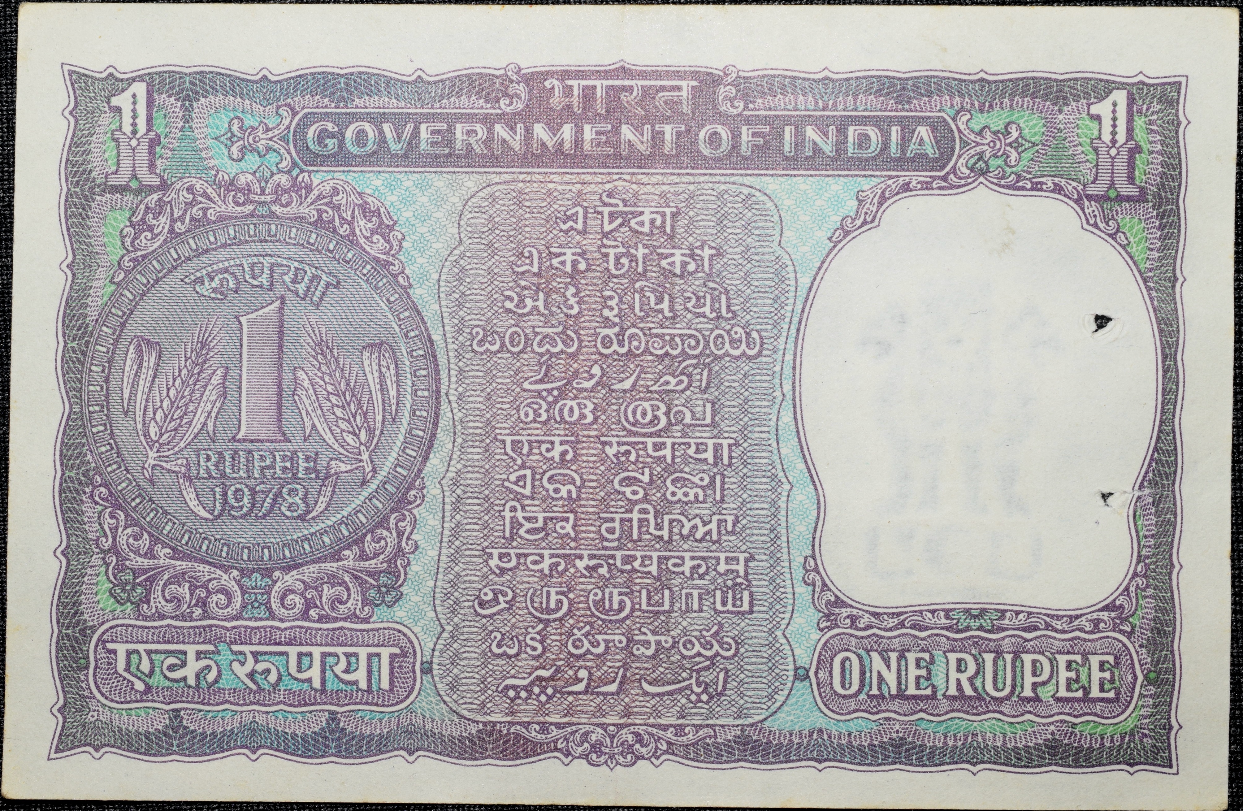 Republic India, (AD 1978), 1 Rupee ‘A’ Inset, Manmohan Singh Signature with Violet color. Smaller watermark window and numbers to the left. Large ornamental 1 in the centre, UNC Grade as per Image.
