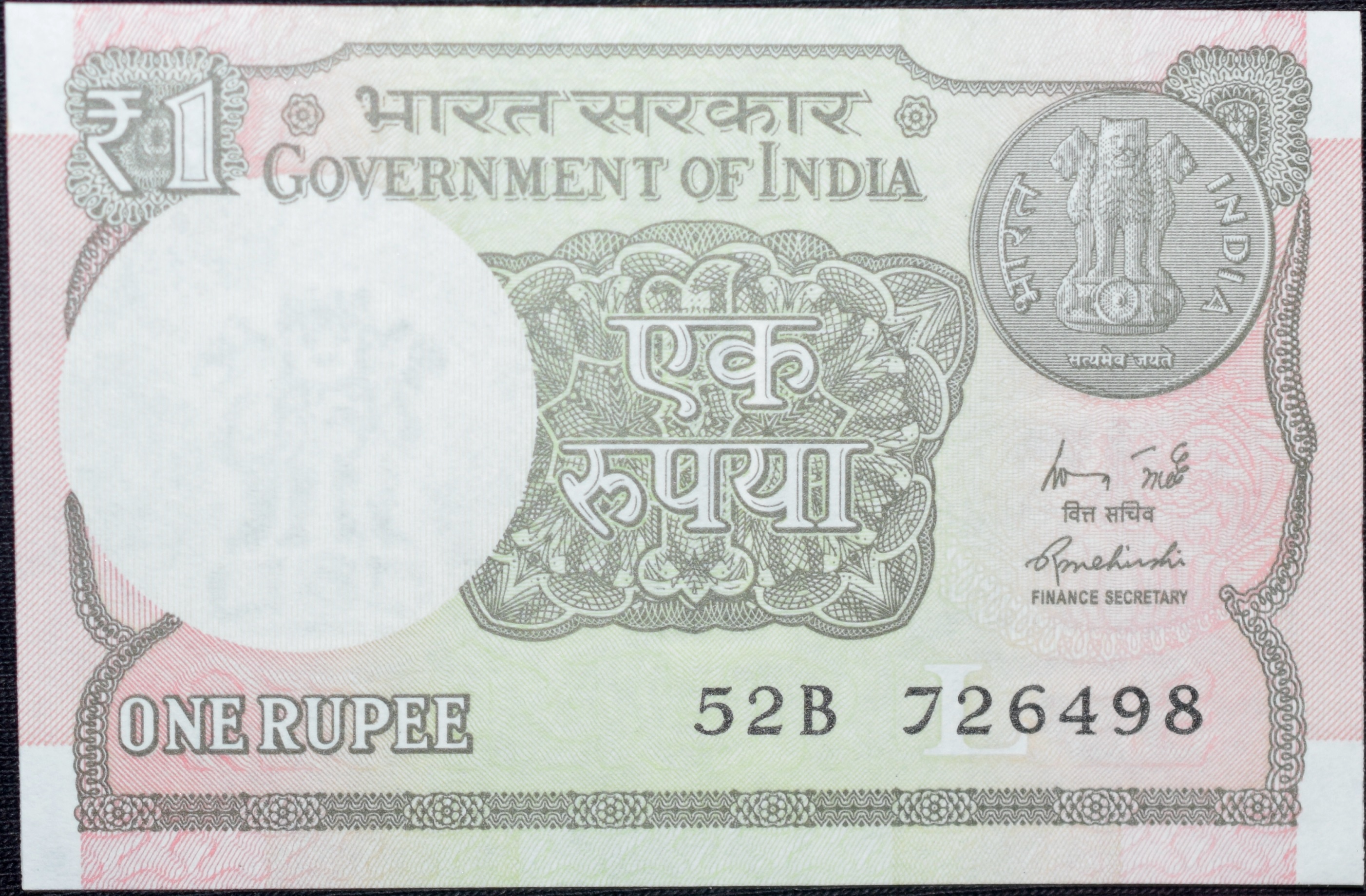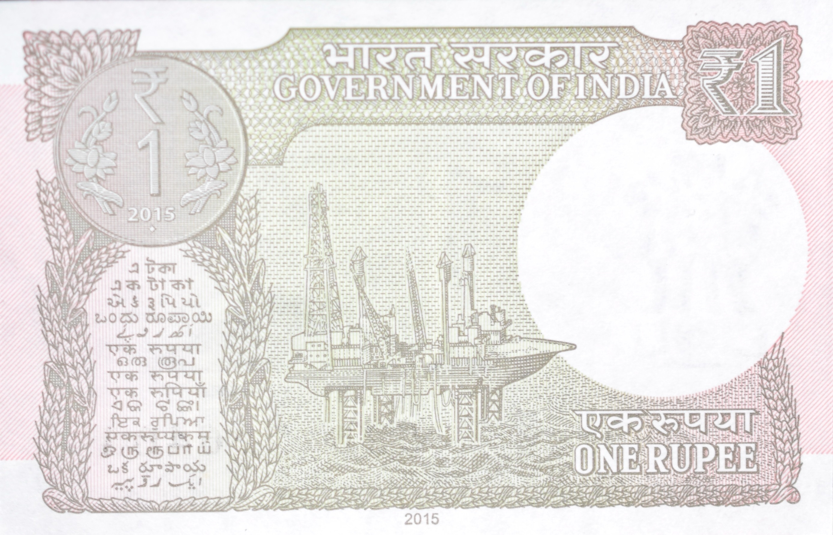 1 Rupee of Republic India (AD 2015) Rajiv Mehrishi Signature – Sagar Samrat – oil rig