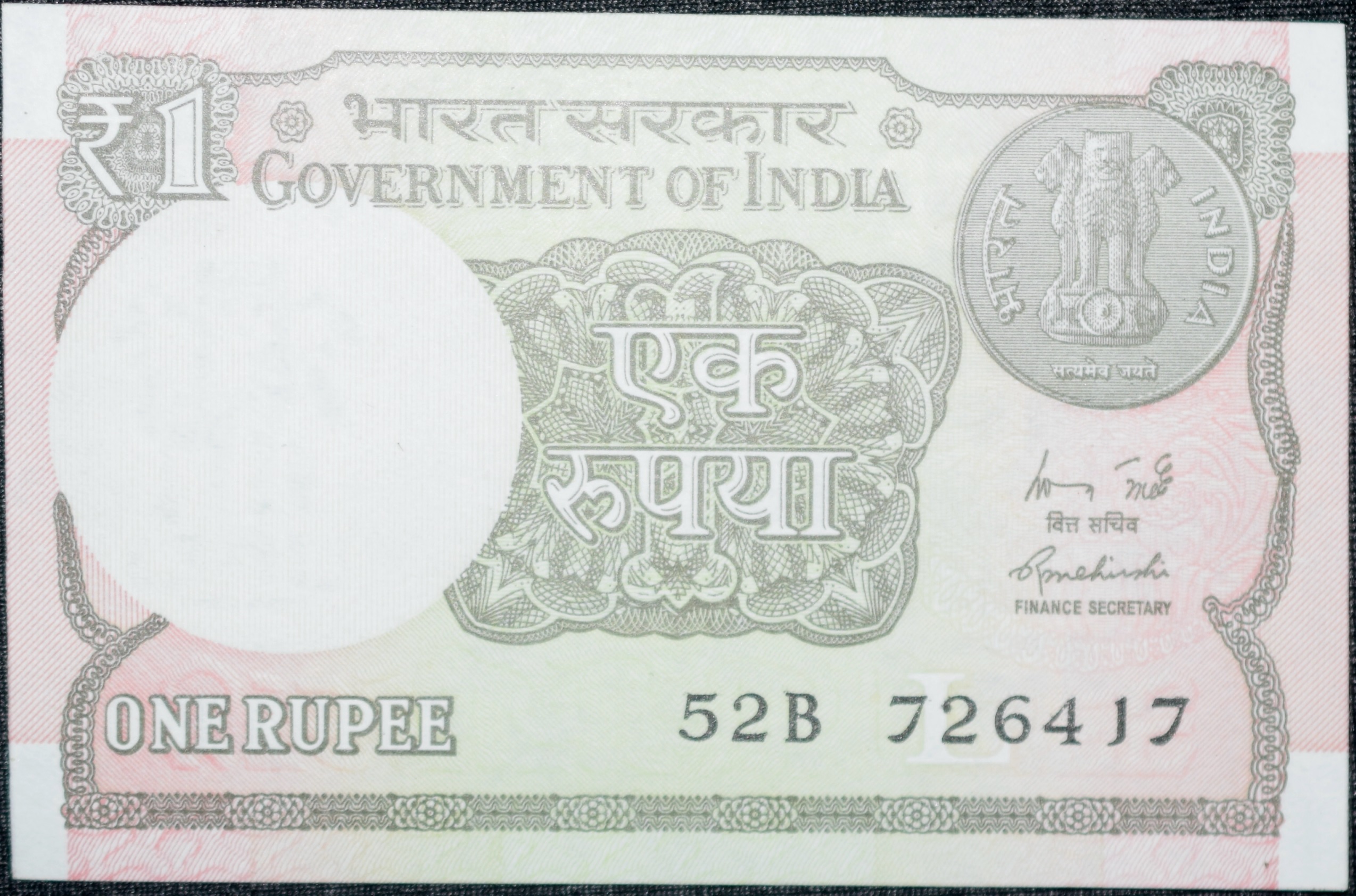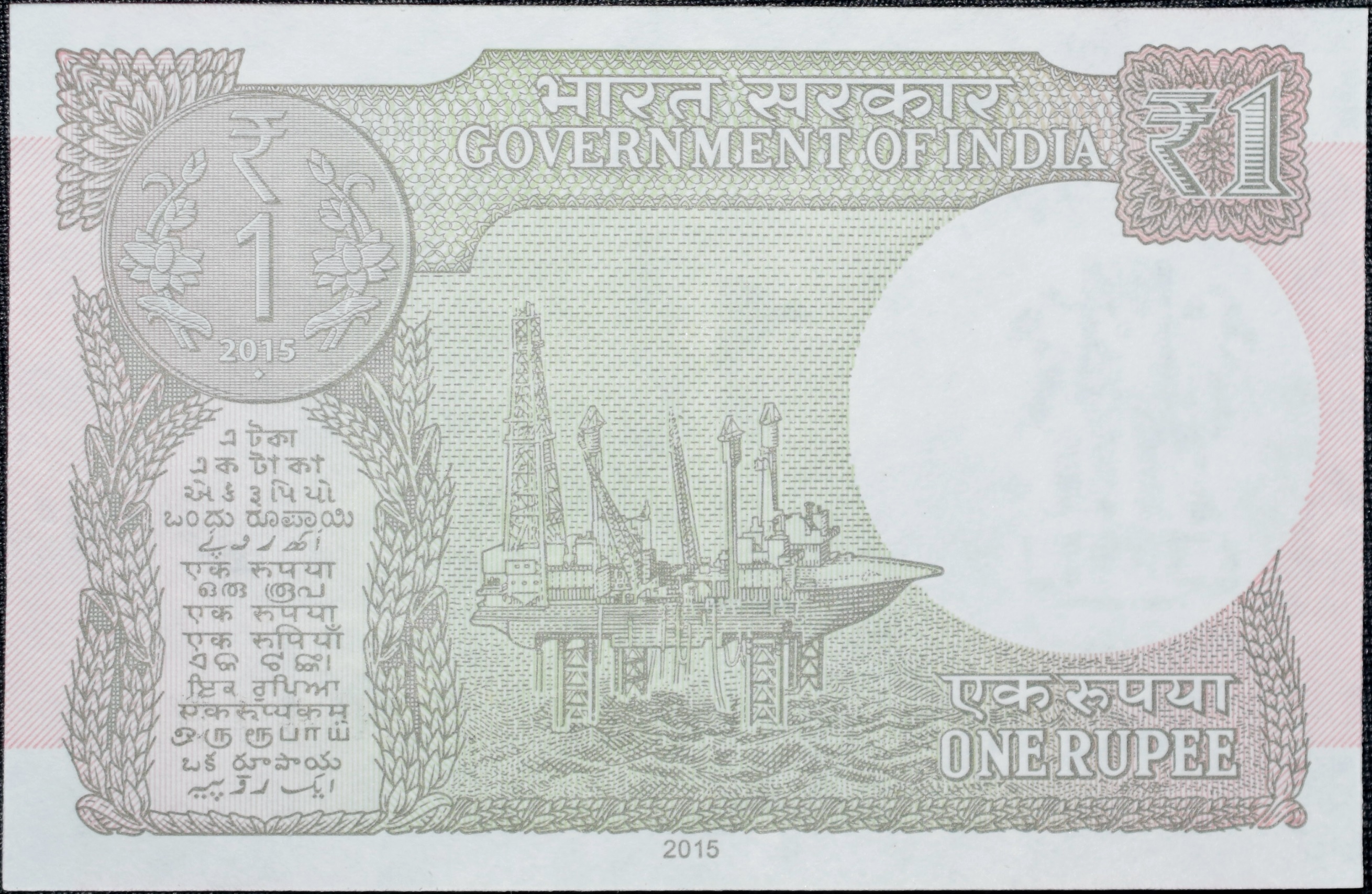 1 Rupee of Republic India (AD 2015) Rajiv Mehrishi Signature – Sagar Samrat – oil rig