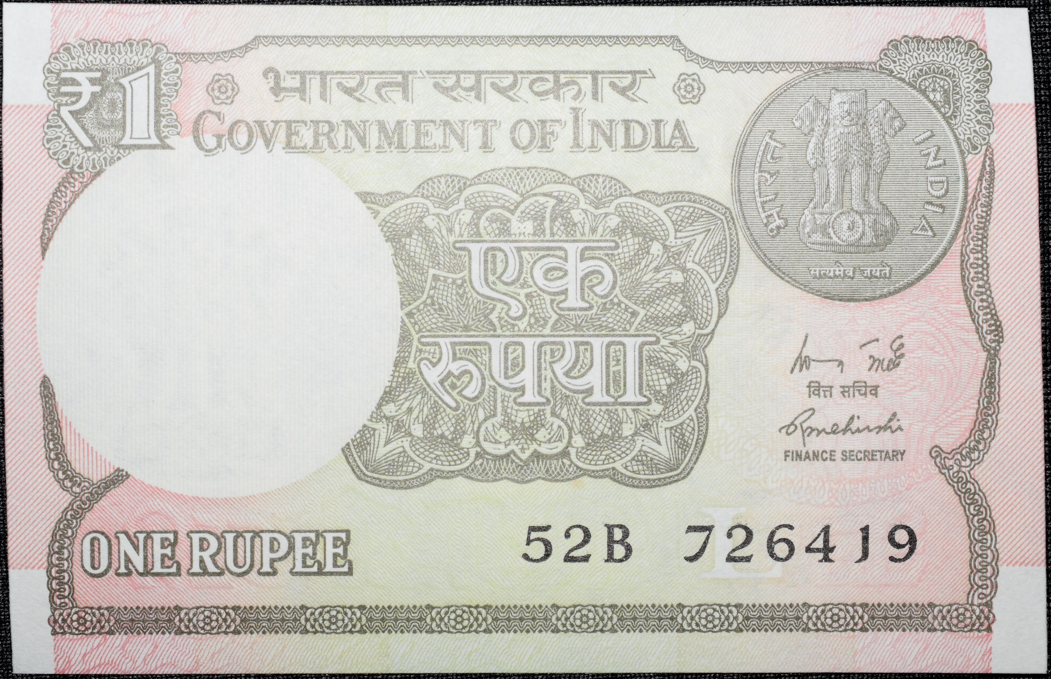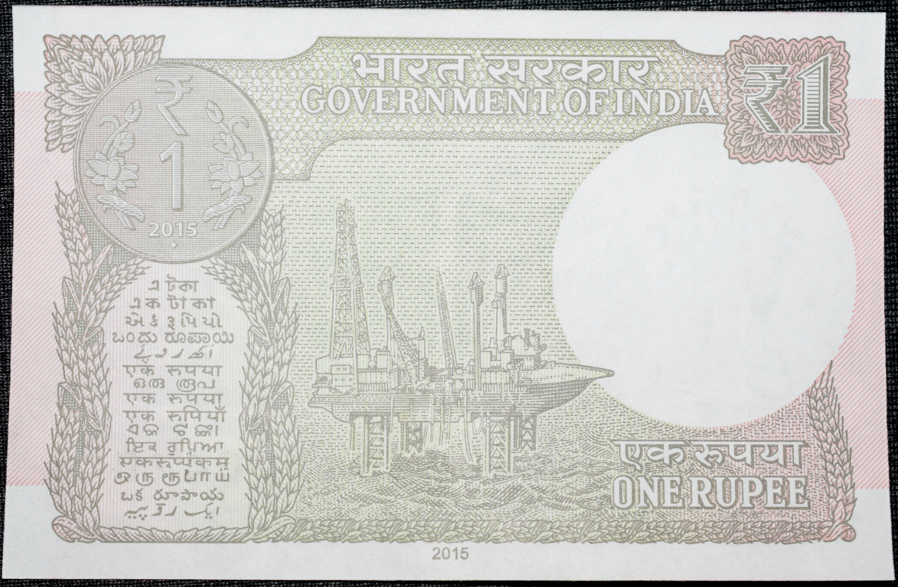 1 Rupee of Republic India (AD 2015) Rajiv Mehrishi Signature – Sagar Samrat – oil rig