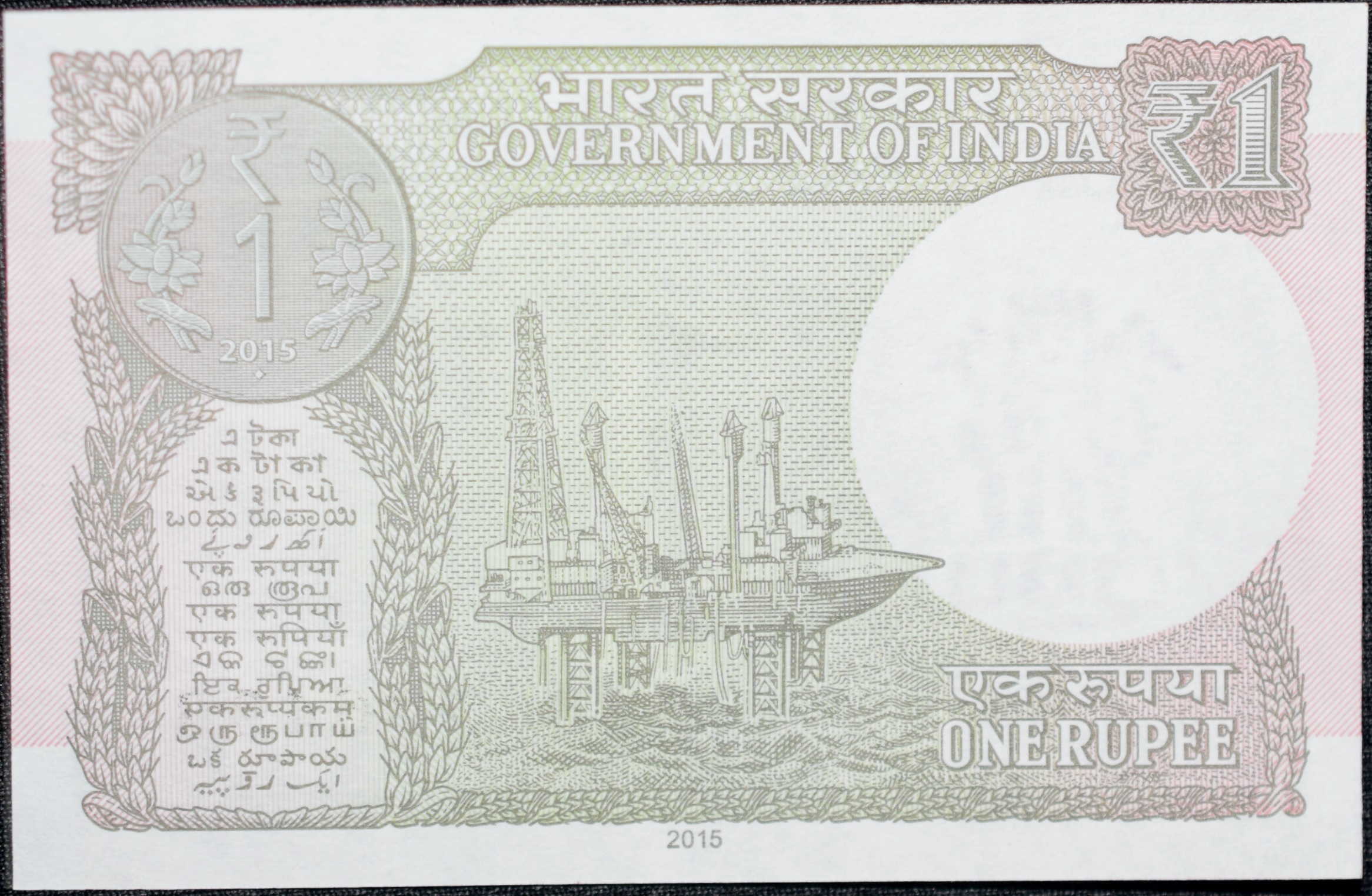 1 Rupee of Republic India (AD 2015) Rajiv Mehrishi Signature – Sagar Samrat – oil rig
