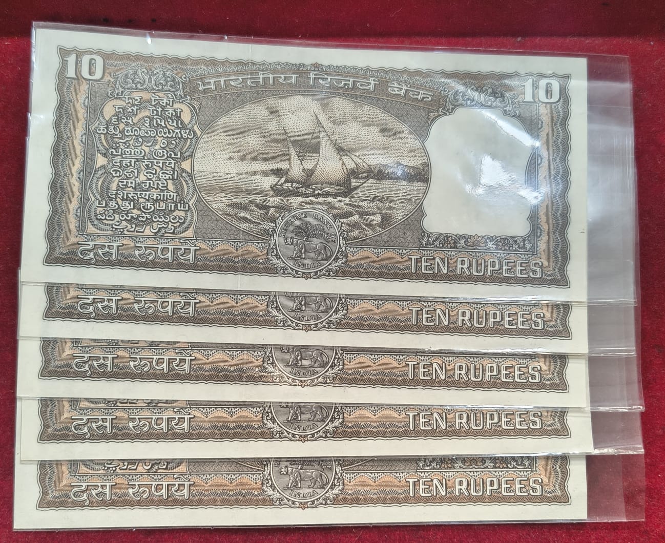 10 RUPEES BLACK BOAT GOVERNOR I.J PATEL ( 5 PCS LOTT) RARE