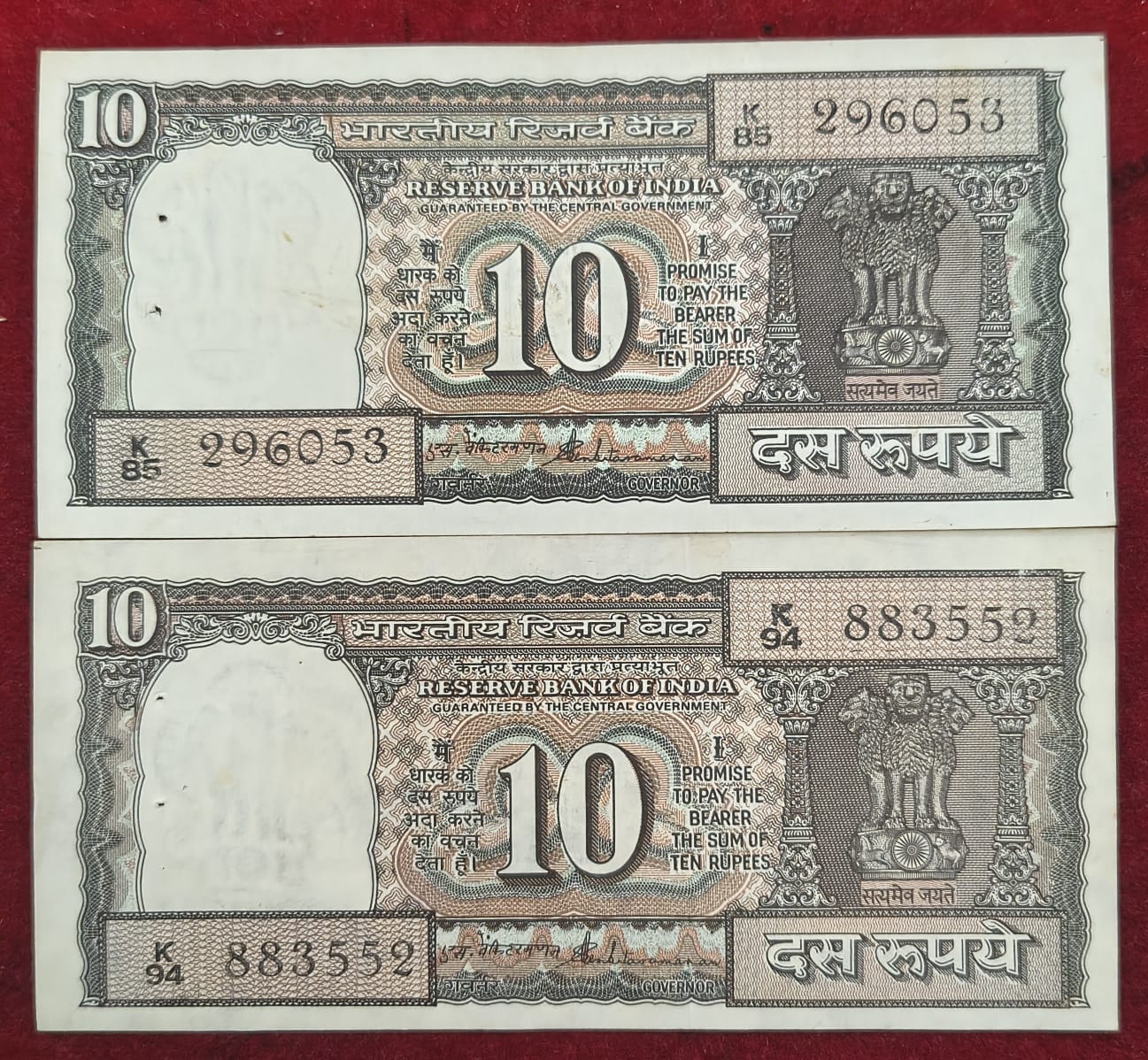 10 RUPEES BLACK BOAT S.VANKATRAMAN ( K. PREEIX ) UNC 2 PCS