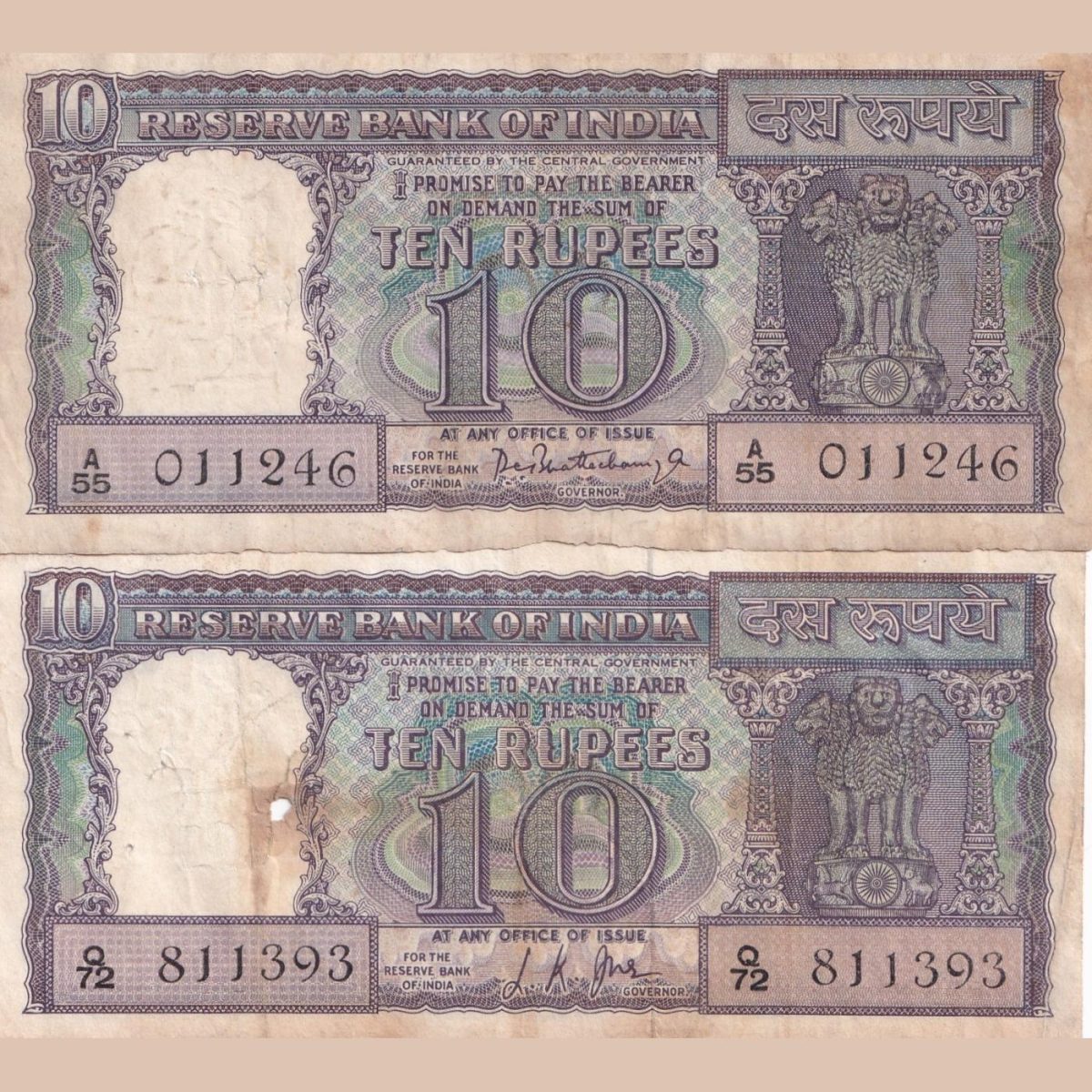 Dive into the world of numismatics with this exquisite 10 Rupees Diamond Issue Set featuring two different signatures of Governer Batacharya and L.K Jha. Issued in the past, these banknotes hold a piece of history within their intricate designs and unique attributes. The notes showcase the authority of the issuing body and carry a sense of nostalgia from the era they were circulated. With their rare signatures and distinct denominations, these notes are a prized possession for any collector or enthusiast.