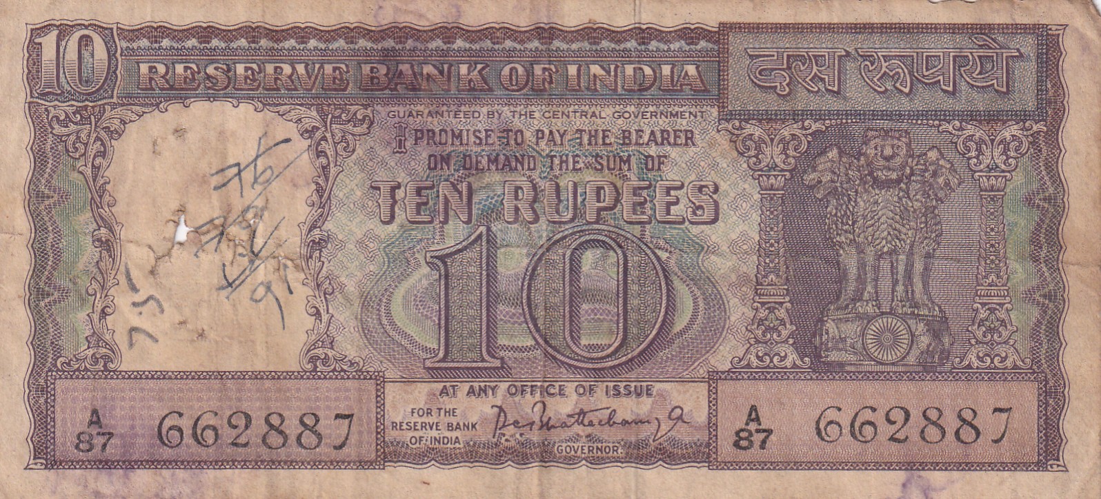 10 Rupees Diamond Old Issue Governor P.C Bhattacharya Note