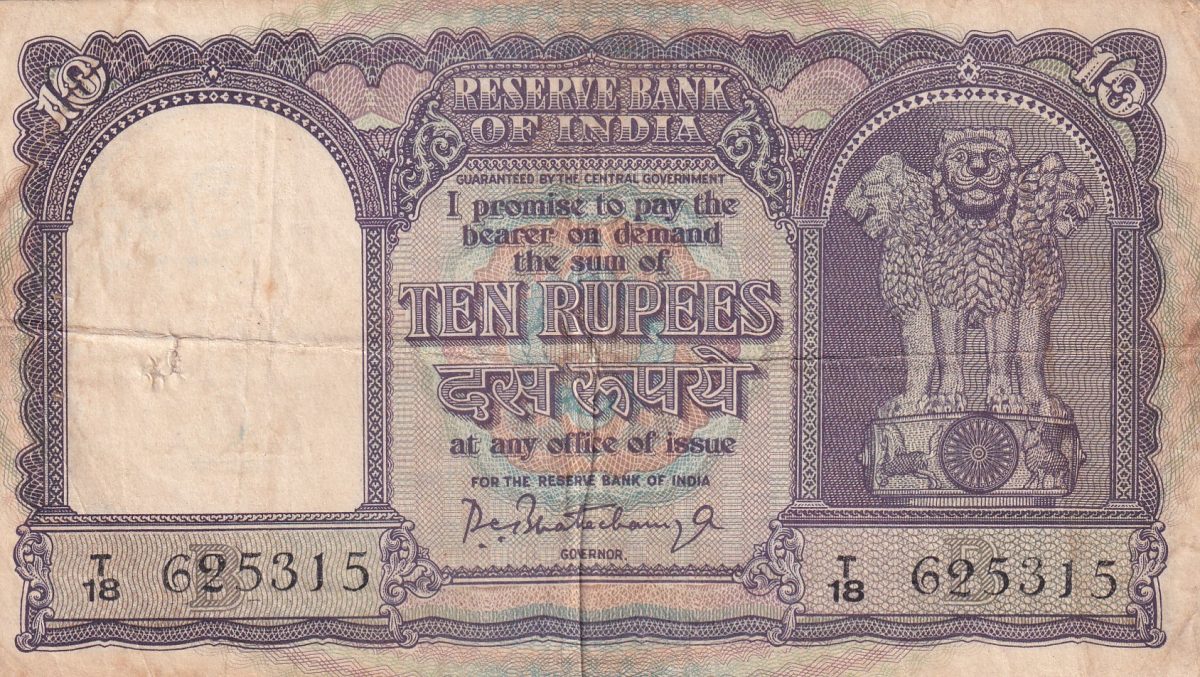 10 RUPEES FAFDA ISSUE BIG SIZE GOVERNOR P.C.BHATTACHARYA RARE NOTE