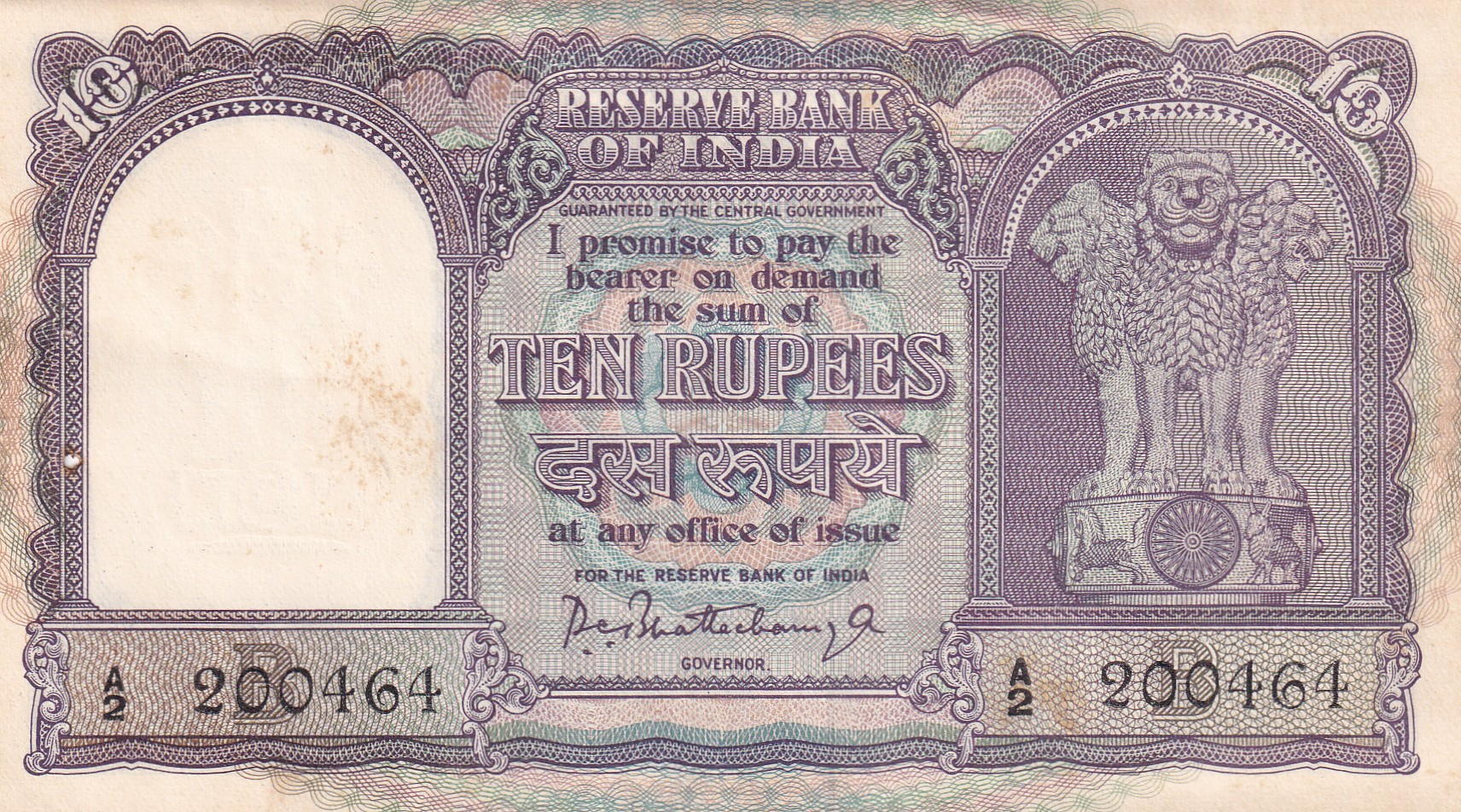 10 RUPEES FAFDA ISSUE GOVERNOR P.C BHATTACHARYA TOP CONDITION ALMOST UNC