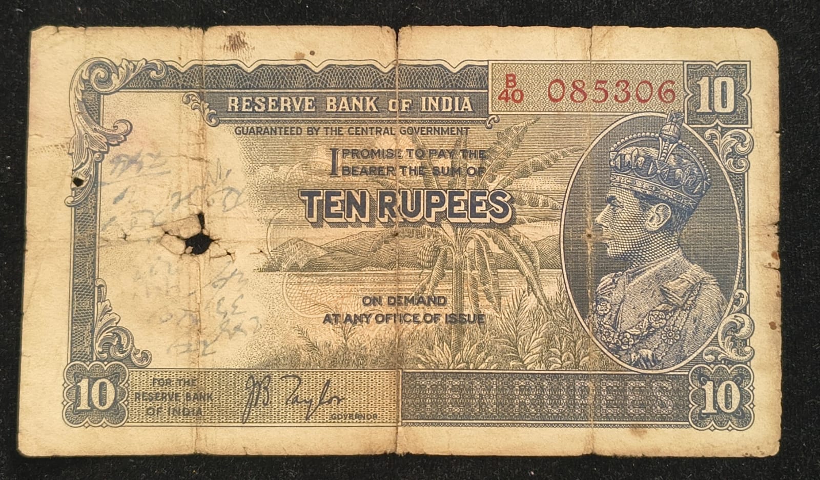 10 RUPEES GEORGE VI GOVERNOR J.B.TAYLOR BUYER WILL RECEIVE SAME CONDITION NOTE AS PER IMAGE
