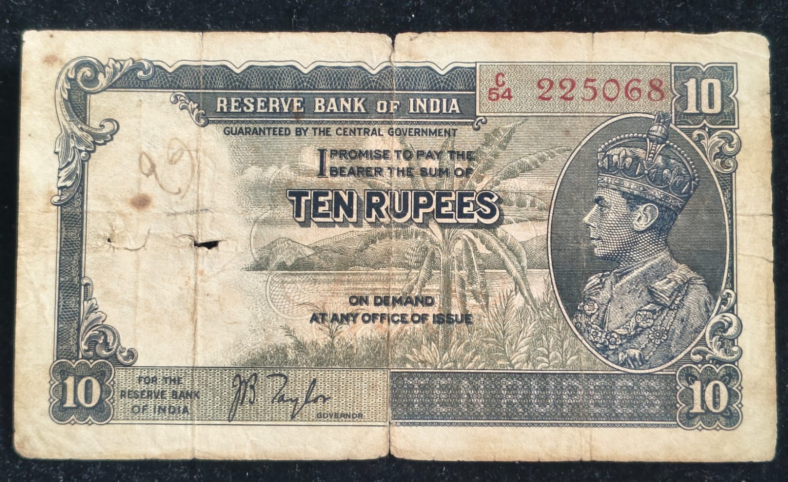10 RUPEES GEORGE VI GOVERNOR J.B.TAYLOR BUYER WILL RECEIVE SAME CONDITION NOTE AS PER IMAGE